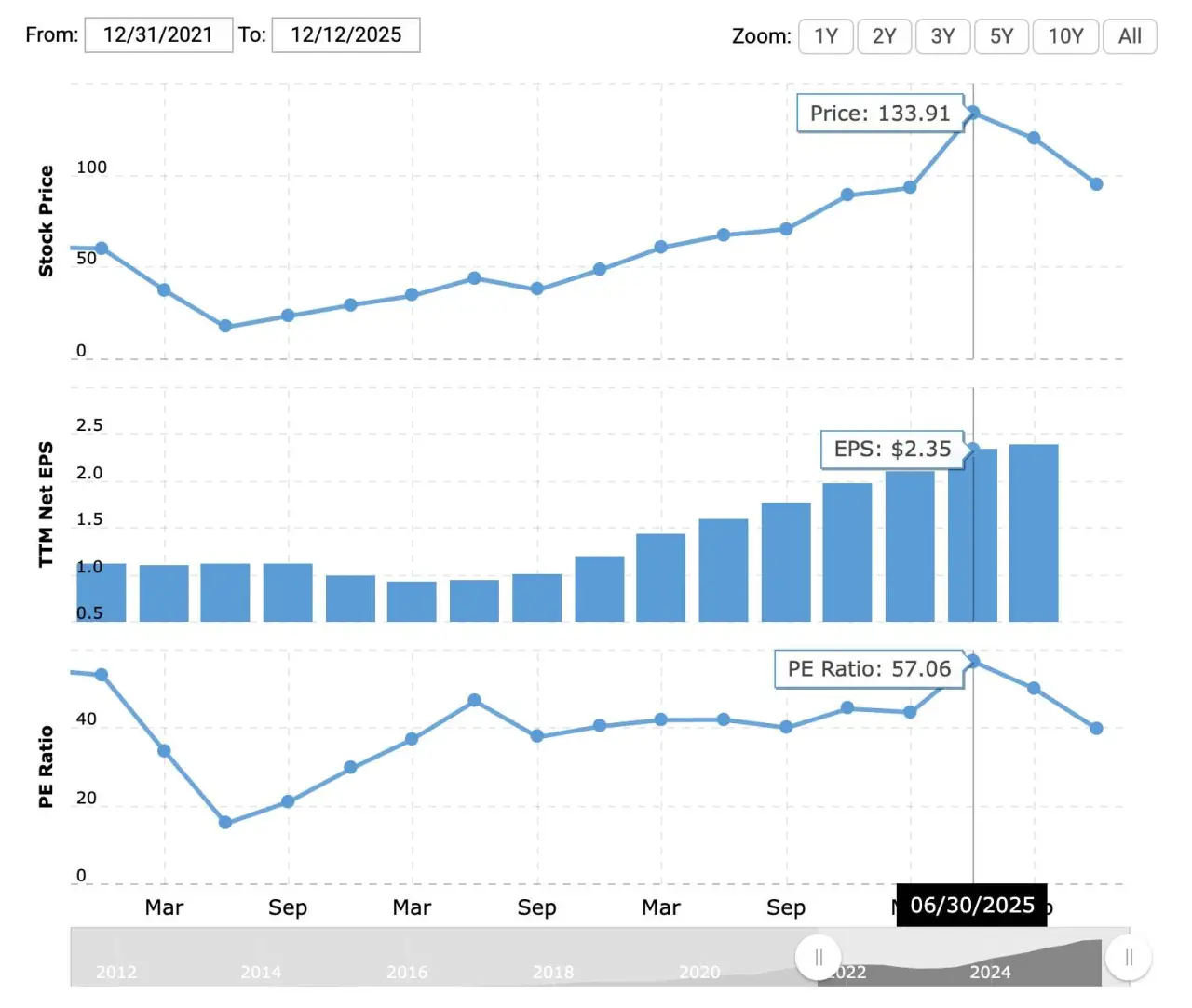 2025'e girerken, genel teknoloji trendinin etkisiyle hisse senedi defalarca yeni zirvelere ulaştı. Ayrıca, maç başına ortalama 50 milyon izleyici çeken ve tarihin en çok izlenen canlı NFL maçları olan NFL Noel Günü maçının yayınından da faydalandı. Piyasa değeri geçici olarak 552 milyar doları aştı.