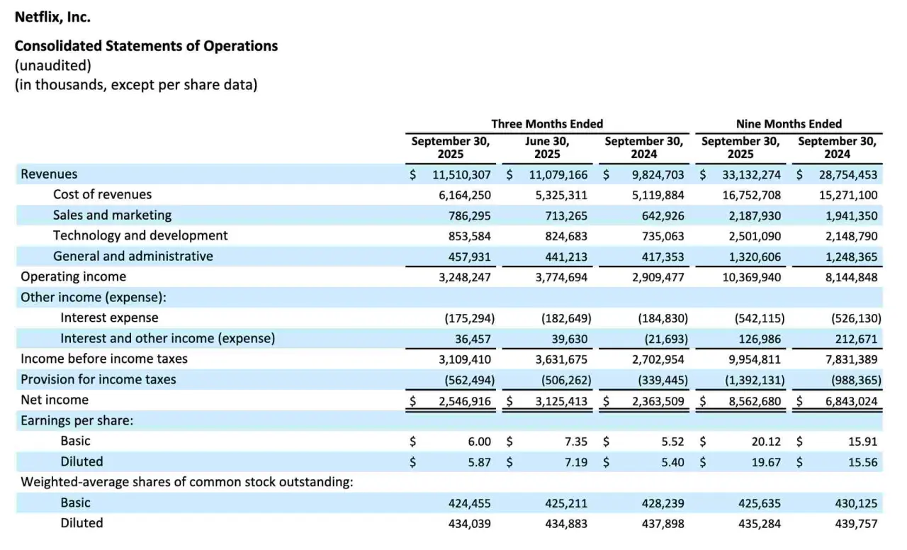 Netflix'in performansı iyileşmeye devam etse de , piyasa bunu zaten tamamen fiyatlandırmıştı. Beklentiler, kazanç raporlarında daha hızlı bir büyüme yönündeydi. Ancak, 2025'in 3. çeyrek kazanç verileri ve muhafazakar çeyrek beklentileri piyasayı büyük ölçüde hayal kırıklığına uğrattı ve 3. çeyrek verilerinin açıklanmasının ardından hisse senedi fiyatında %10'dan fazla bir düşüşe yol açtı.