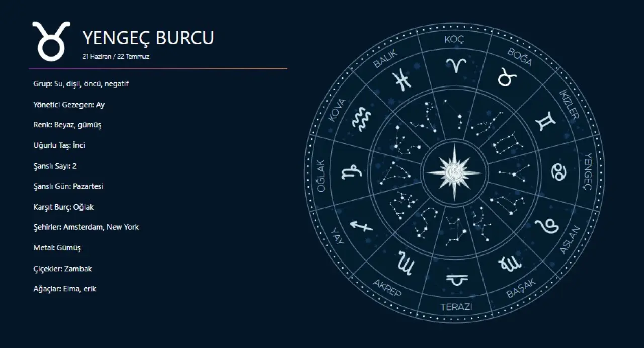 Yıllık: 2025 yılı, bilge Satürn'ün nazik ve duyarlı bir atmosfer yaratmasıyla Yengeç burcuna gelişme ve bol bol macera şansı sunabilir. Satürn, 2025 yılında su burcu Balık ile uyumlu bir şekilde çalışacak. Bu geçiş, Yengeç burçları için dünyayı yeni ve heyecan verici deneyimler aracılığıyla daha iyi anlama şansı demek. Ayrıca 2025 yılı sana hak ettiğin ilgi ve takdiri alma konusunda fazlasıyla yardımcı olacak.