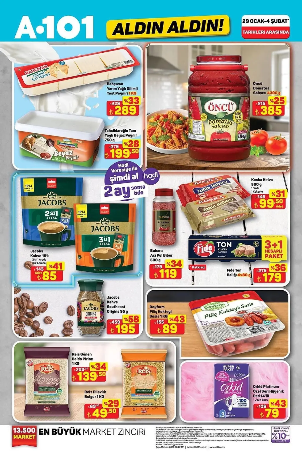 A101, Ocak ayı kampanyalarına hız kesmeden devam ediyor. 29 Ocak 2026 tarihinden itibaren müşterilerine sunacağı indirimli ürünler listesiyle dikkat çekiyor. 'Aldın Aldın' indirimleri kapsamında hangi ürünlerin yer alacağı merakla bekleniyor. Detaylar, A101'in aktüel ürünler kataloğunda yer alacak.