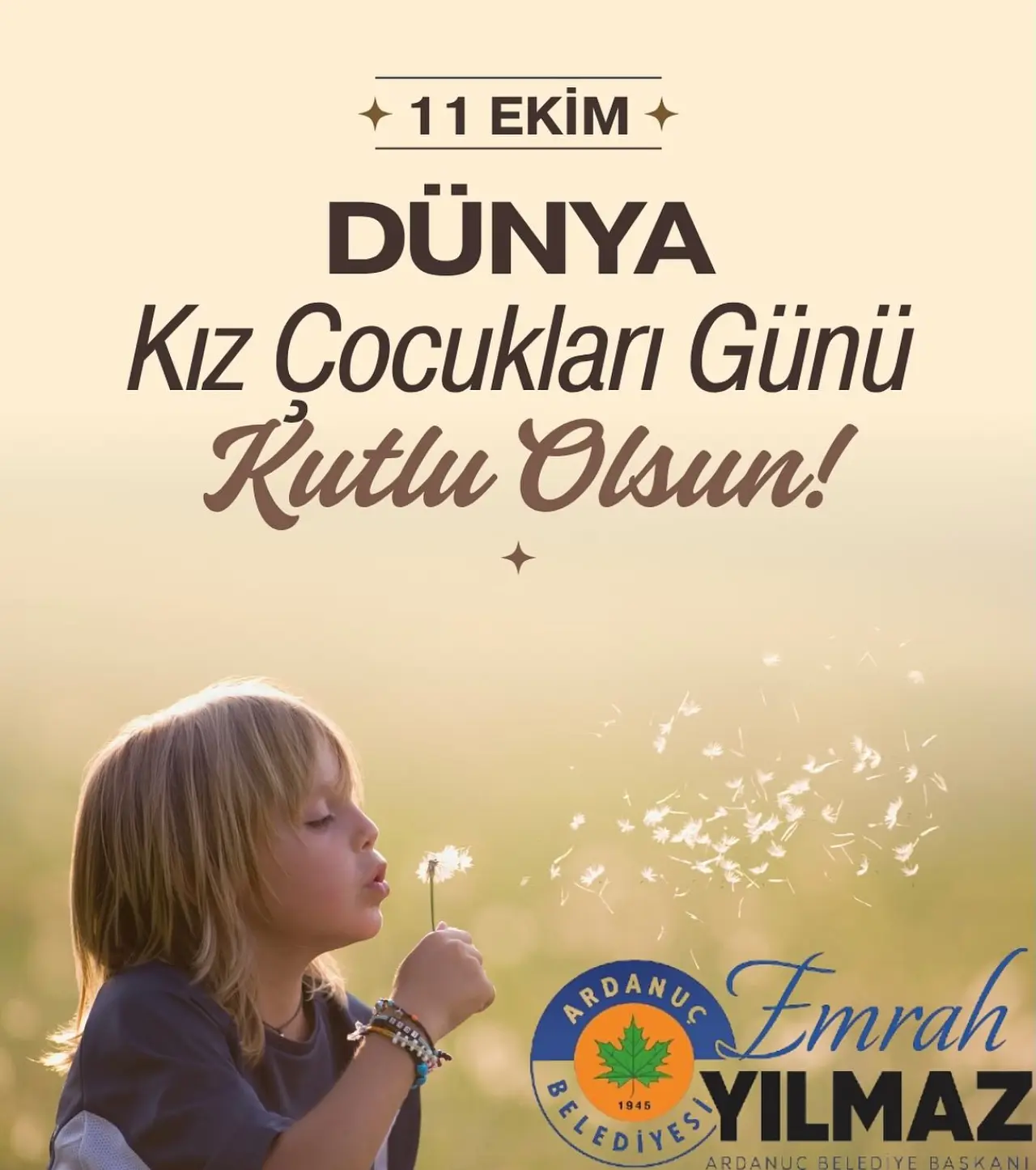 Ardanuç Belediyesi, 11 Ekim Dünya Kız Çocukları Günü’nü sosyal medya platformları aracılığıyla gerçekleştirdiği anlamlı paylaşımlarla kutladı. Belediye Başkanı Emrah Yılmaz, kişisel sosyal medya hesabından yaptığı paylaşımında, "Geleceğe umutla bakmamızı sağlayan kız çocuklarımızın Dünya Kız Çocukları Günü kutlu olsun!" ifadeleriyle duygu ve düşüncelerini dile getirdi.