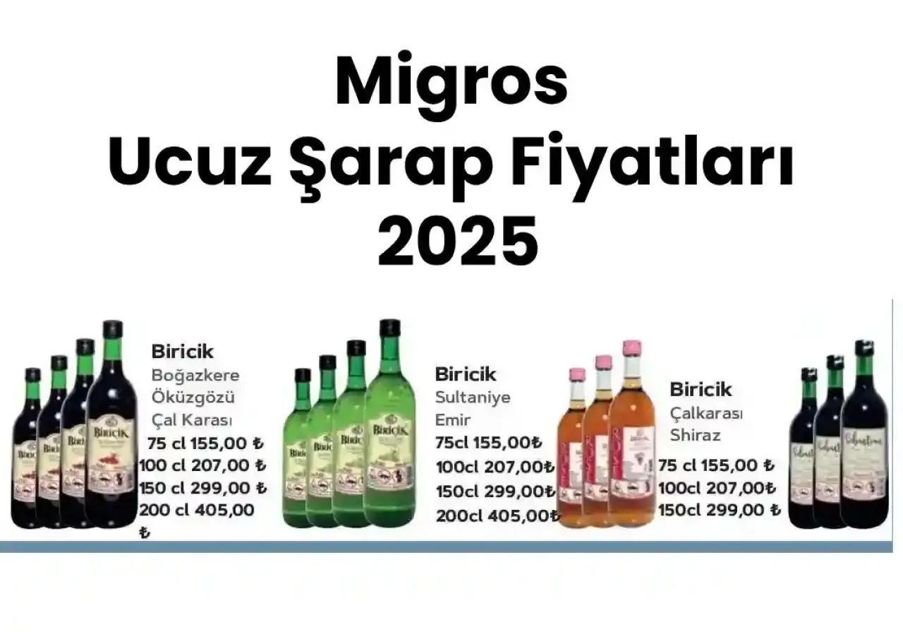 15.07.2025 tarihi itibarıyla güncel Migros şarap fiyatları:
