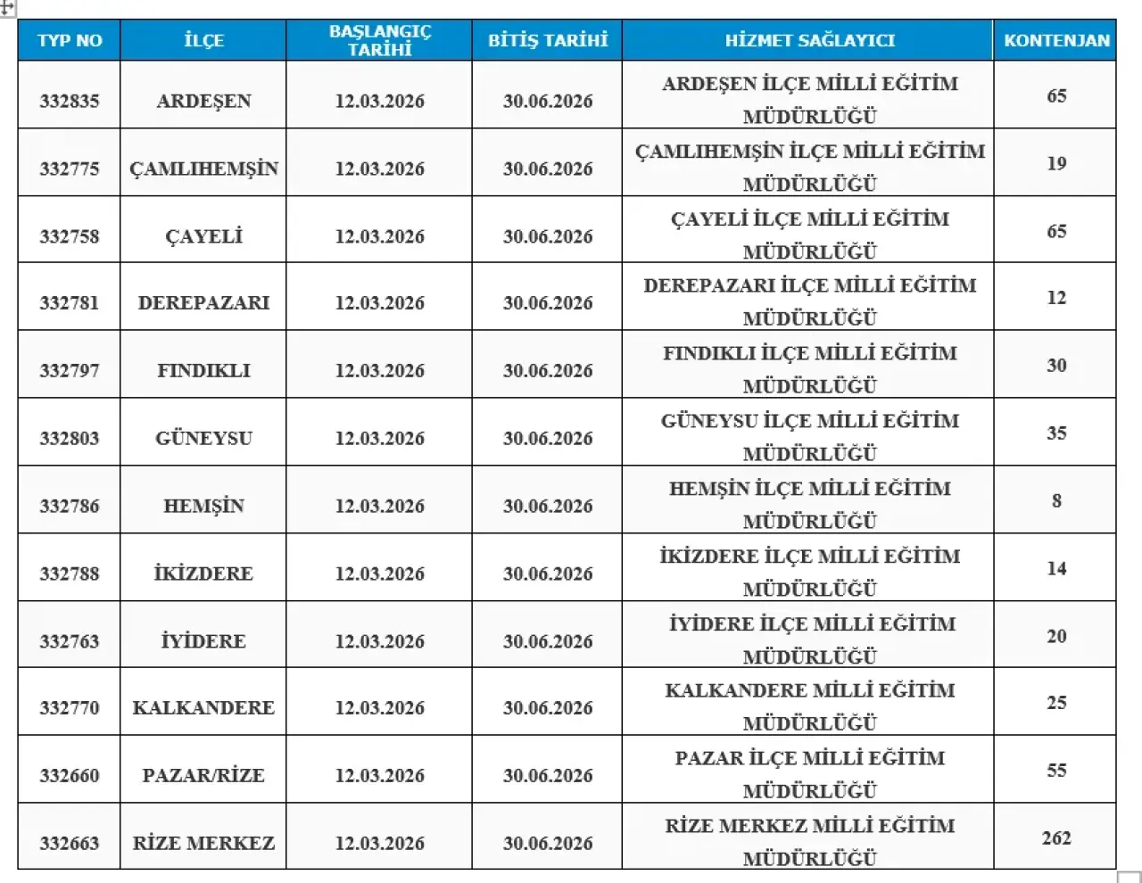 Rize Çalışma ve İş Kurumu İl Müdürlüğü tarafından, Rize Milli Eğitim Müdürlüğü bünyesinde il merkezi ve ilçelerde 12 Mart 2026 – 30 Haziran 2026 tarihleri arasında çalıştırılmak üzere 610 kişilik Toplum Yararına Program (TYP) düzenleneceği duyuruldu.