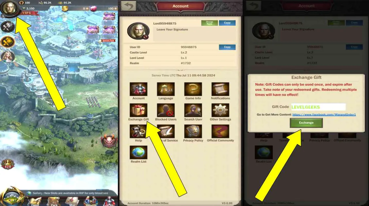 4. Put the codes in the ‘Input Gift Code Here‘ section.