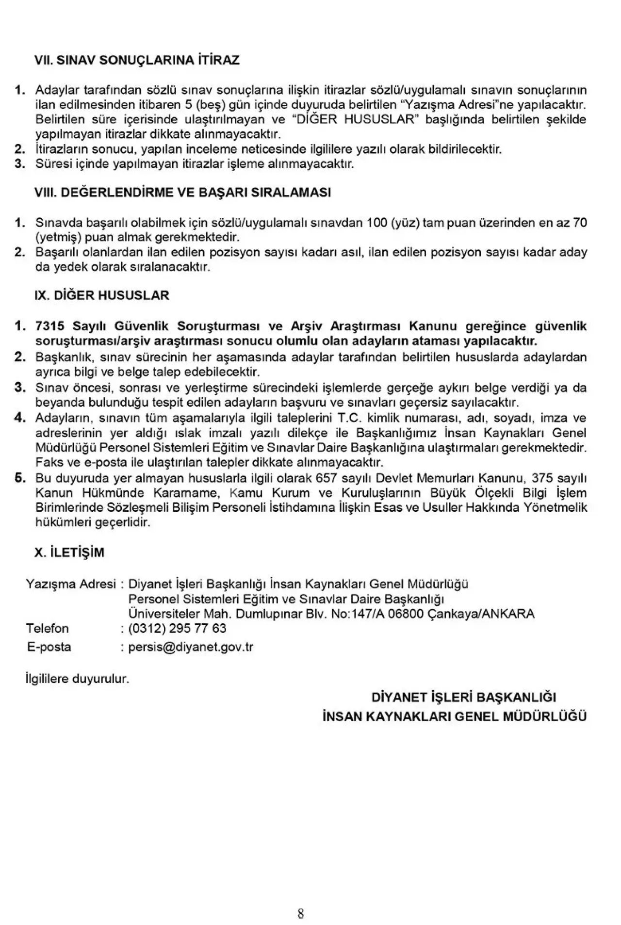 Diyanet İşleri Başkanlığı Strateji Geliştirme Başkanlığında istihdam edilmek üzere; 375 Sayılı Kanun Hükmünde Kararname’nin Ek 6’ncı maddesi ile 31/12/2008 tarih ve 27097 sayılı Resmî Gazete’de yayımlanan Kamu Kurum ve Kuruluşlarının Büyük Ölçekli Bilgi İşlem Birimlerinde Sözleşmeli Bilişim Personeli İstihdamına İlişkin Esas ve Usuller Hakkında Yönetmelik'in 8’inci maddesi kapsamında sözlü/uygulamalı sınav başarı sırasına göre 10 adet sözleşmeli bilişim personeli alımı yapılacak.