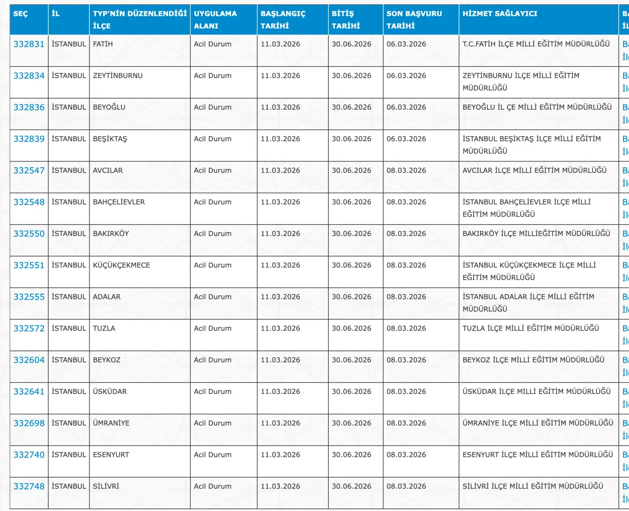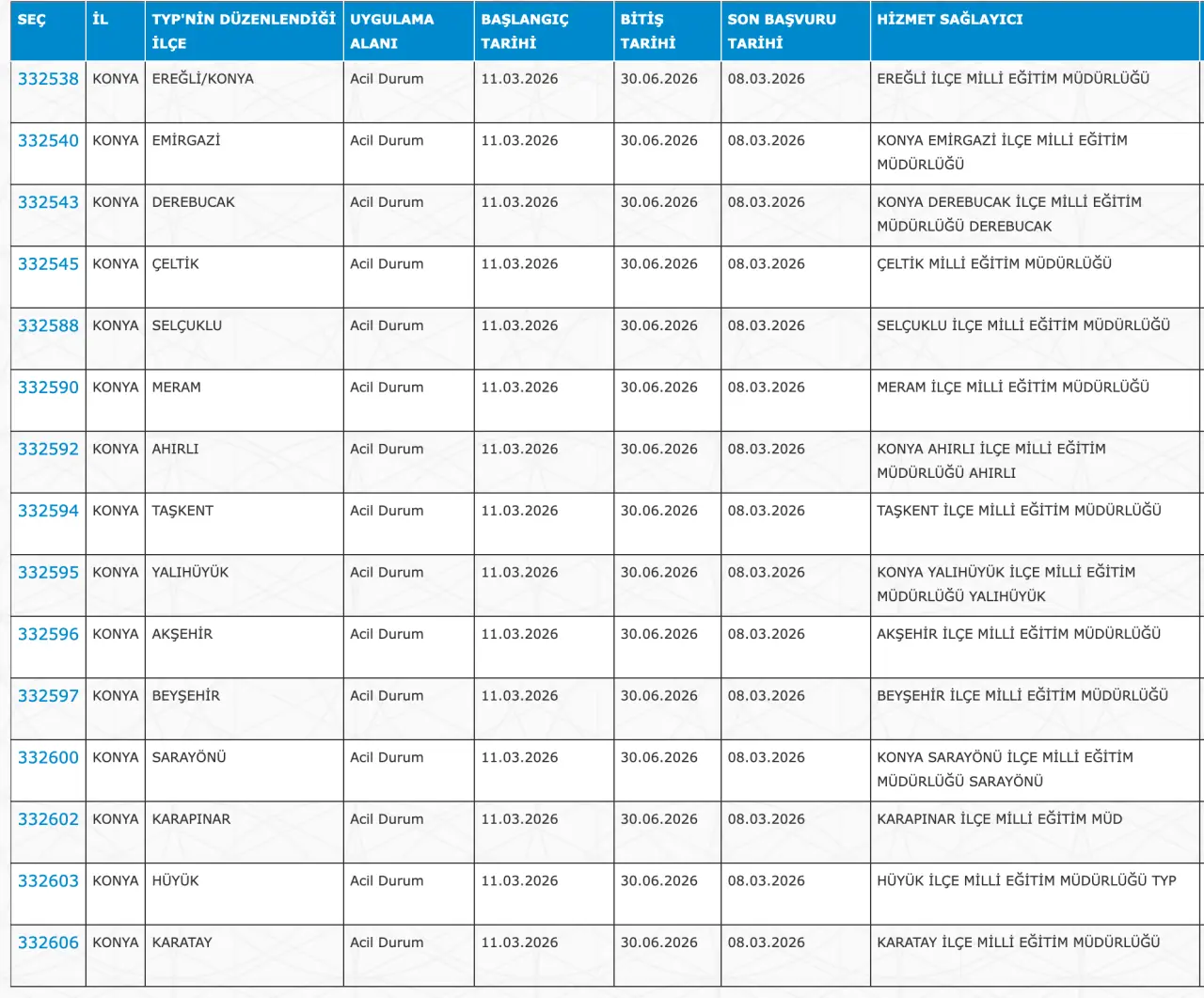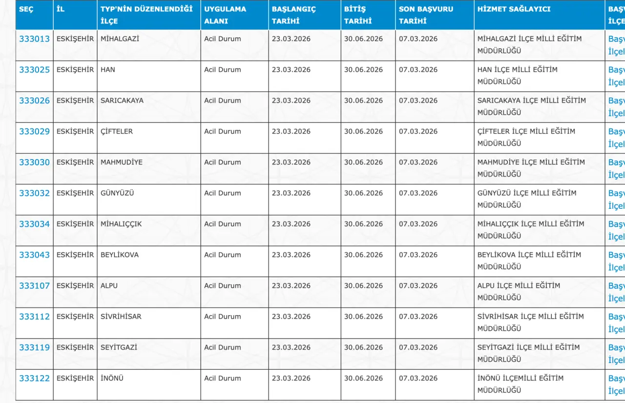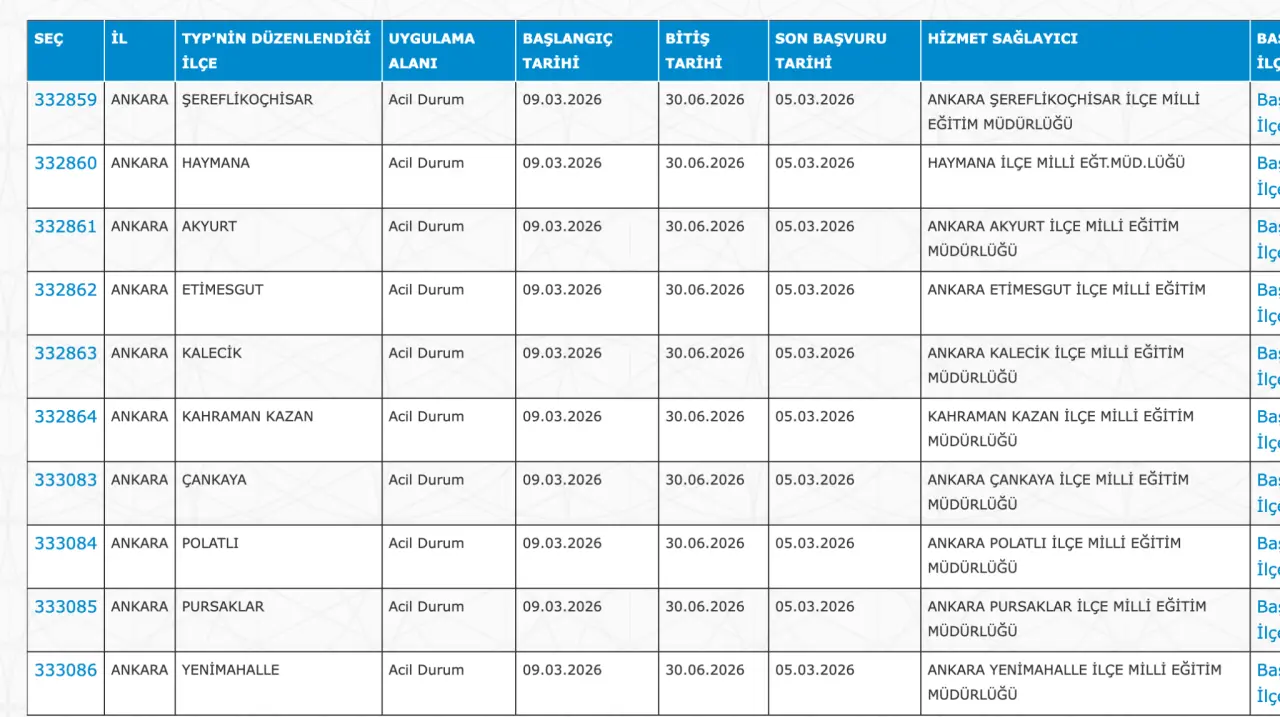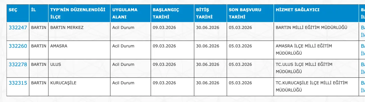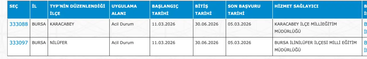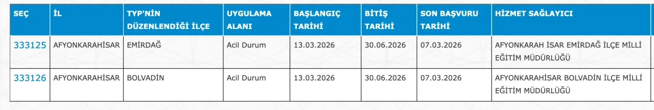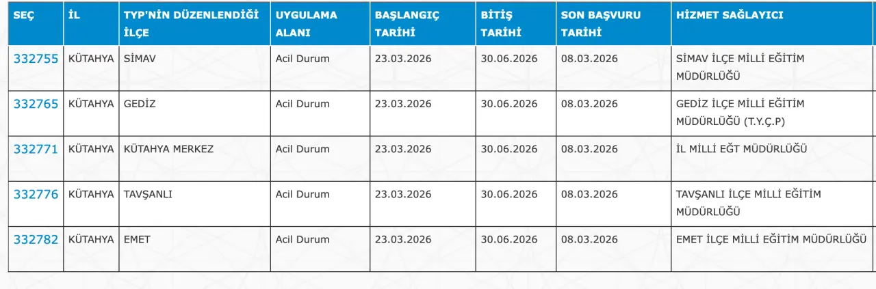 Adaylar TYP Başvurularını sadece İŞKUR üzerinden gerçekleştirecekler. Buna göre ” https://esube.iskur.gov.tr/Typ/TypArama.aspx ” adresine e-Devlet şifresi ile giriş yaptıktan sonra aşağıdaki listede vereceğimiz ilçe listesine göre arama gerçekleştirebilirsiniz.