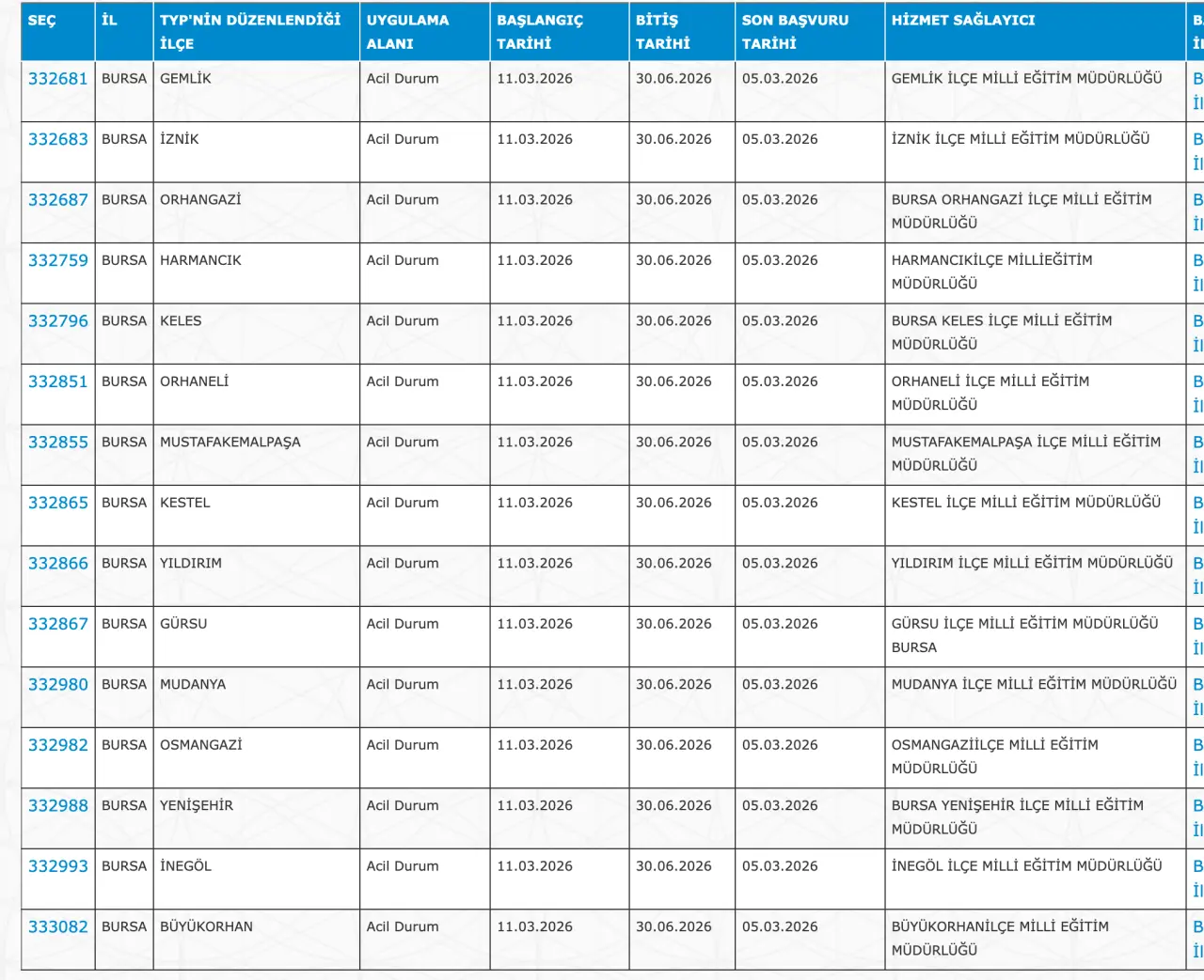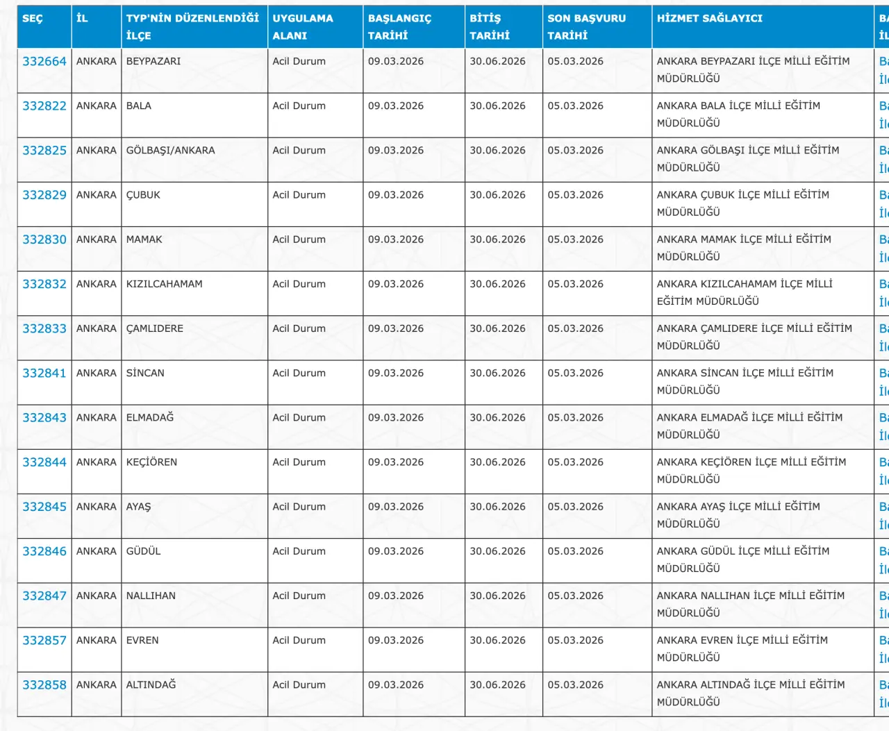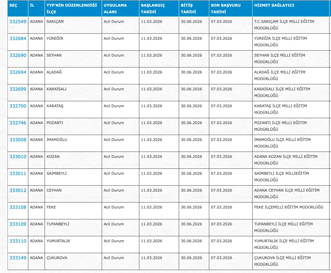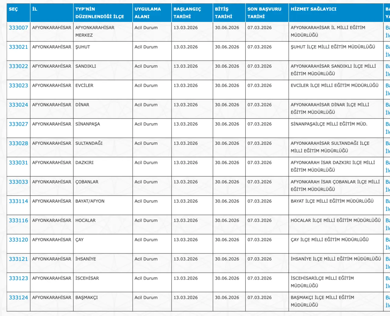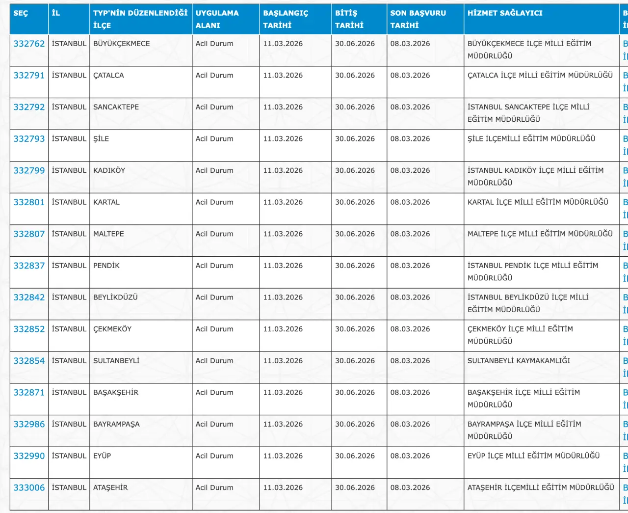 Adaylar TYP Başvurularını sadece İŞKUR üzerinden gerçekleştirecekler. Buna göre ” https://esube.iskur.gov.tr/Typ/TypArama.aspx ” adresine e-Devlet şifresi ile giriş yaptıktan sonra aşağıdaki listede vereceğimiz ilçe listesine göre arama gerçekleştirebilirsiniz.