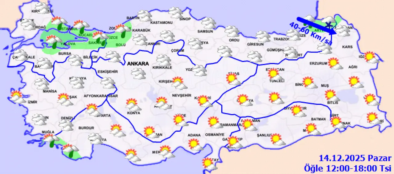 Rüzgarın Doğu Karadeniz’de batı ve kuzeybatı yönlerden kuvvetli (40-60 km/saat) esmesi bekleniyor. Olumsuzluklara karşı dikkatli ve tedbirli olunmalıdır.