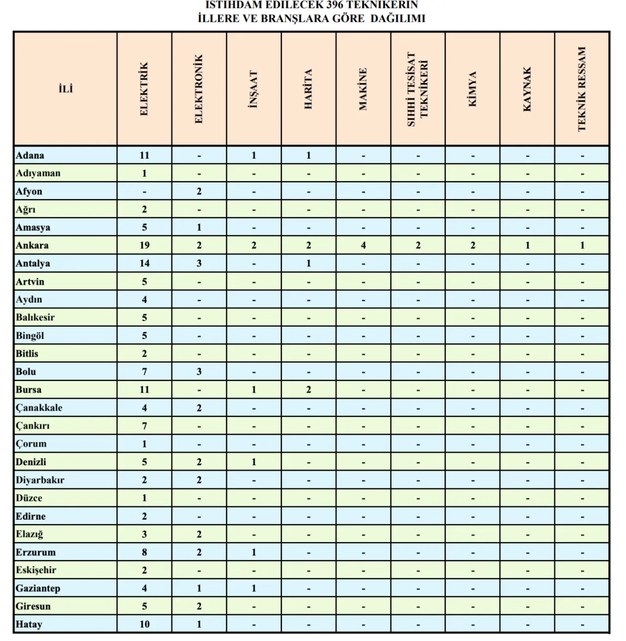 İlan kapsamında alınacak 402 personelin 396’sı tekniker, 6’sı yardımcı hizmetler kadrosundan oluşuyor.