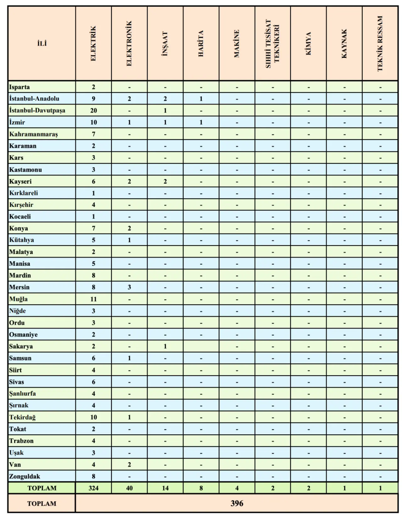Tekniker (396 kişi):
