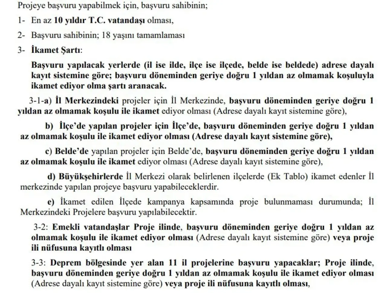 Dairelere başvuru yapılacak yerlerde (il ise ilde, ilçe ise ilçede, belde ise beldede) adrese dayalı kayıt sistemine göre, başvuru döneminden geriye doğru 1 yıldan az olmamak kaydıyla ikamet ediyor olunması şartı bulunuyor.