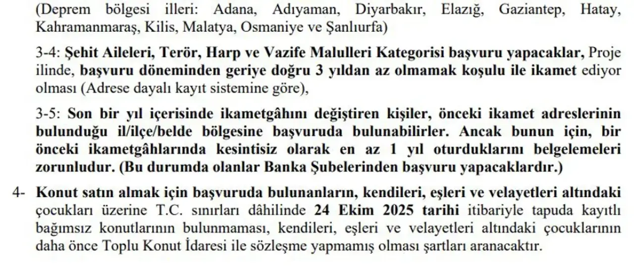 TOKİ tarafından duyurulan 500.000 konut satış projesinde, başvuru yapacak adaylarda bazı şartlar aranıyor. Dairelere başvuru yapacak kişilerin belirtilen şartlara dikkat etmeleri gerekiyor. Ayrıca bu şartlardan birkaçı aşağıda yer alıyor.