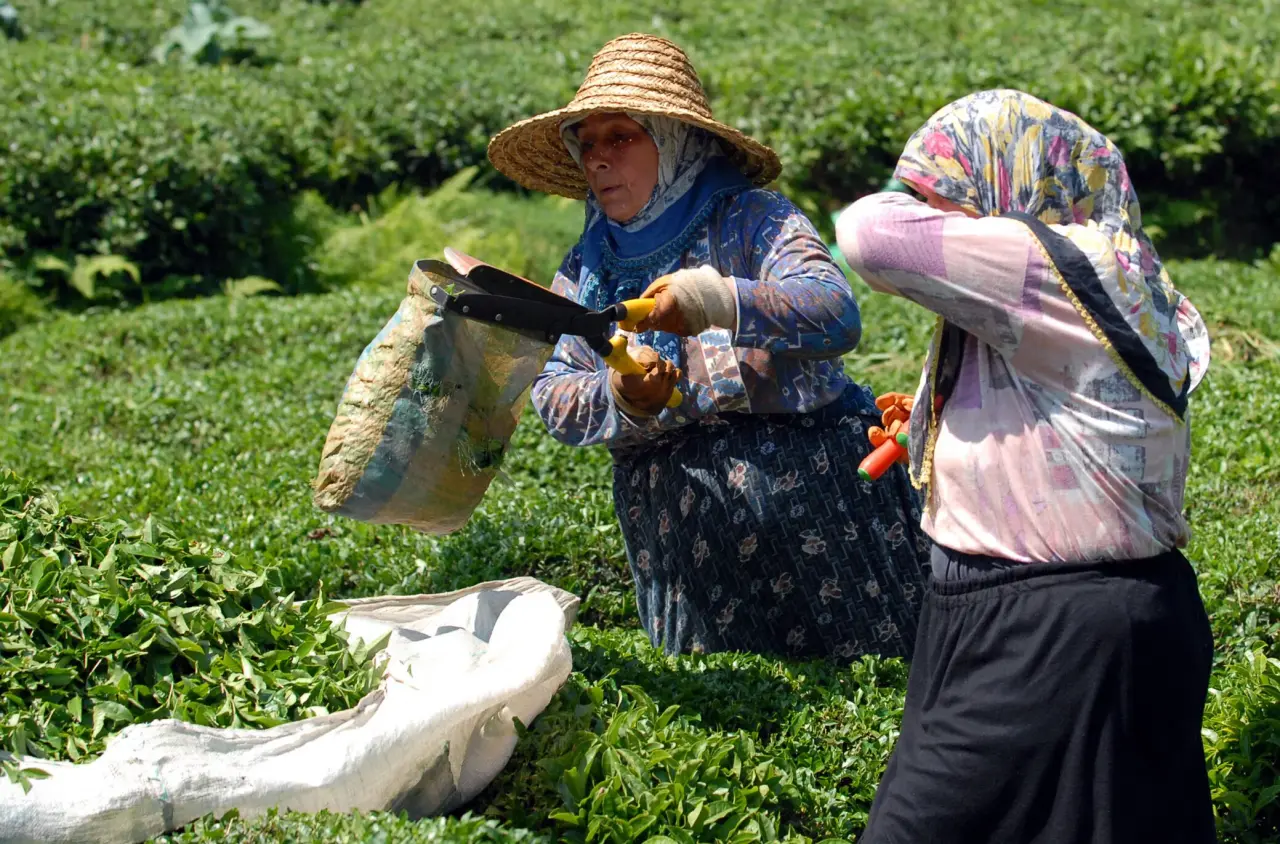 Rize’de çay hasadının tamamına yakın bir kısmı geleneksel çay toplama makası kullanılarak yapılıyor.