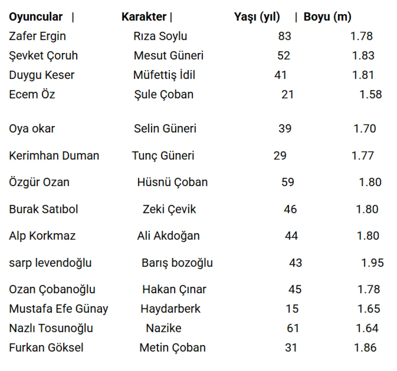 Arka Sokaklar Oyuncuların Yaşları Ve Boyları