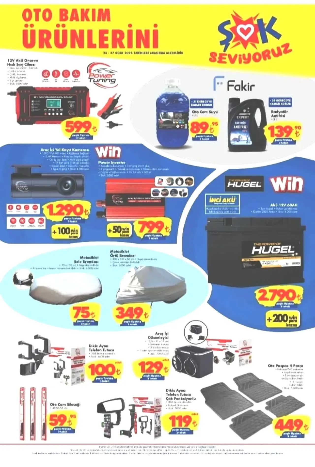 ŞOK’un yeni kataloğunda, araba sahiplerini yakından ilgilendiren pek çok ürün dikkat çekiyor. Cam suyu, motor yağı, oto şampuanı, lastik parlatıcı, iç temizlik spreyleri ve oto aksesuarları, sınırlı sayıda stokla raflarda yer alıyor. Bu uygun fiyatlı kampanya, araç bakımını ekonomik bir şekilde gerçekleştirmek isteyenlere önemli fırsatlar sunuyor.