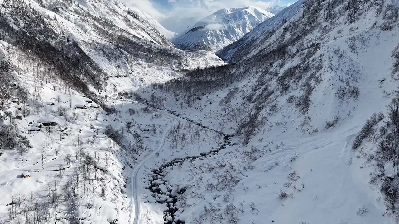 Beyaz örtünün hâkim olduğu vadi, dronla görüntülenirken, kışın tüm güzelliğini yansıtan kareler ortaya çıktı. Kar yağışının etkisini sürdürmesiyle birlikte bölgede manzaranın önümüzdeki günlerde de korunması bekleniyor.