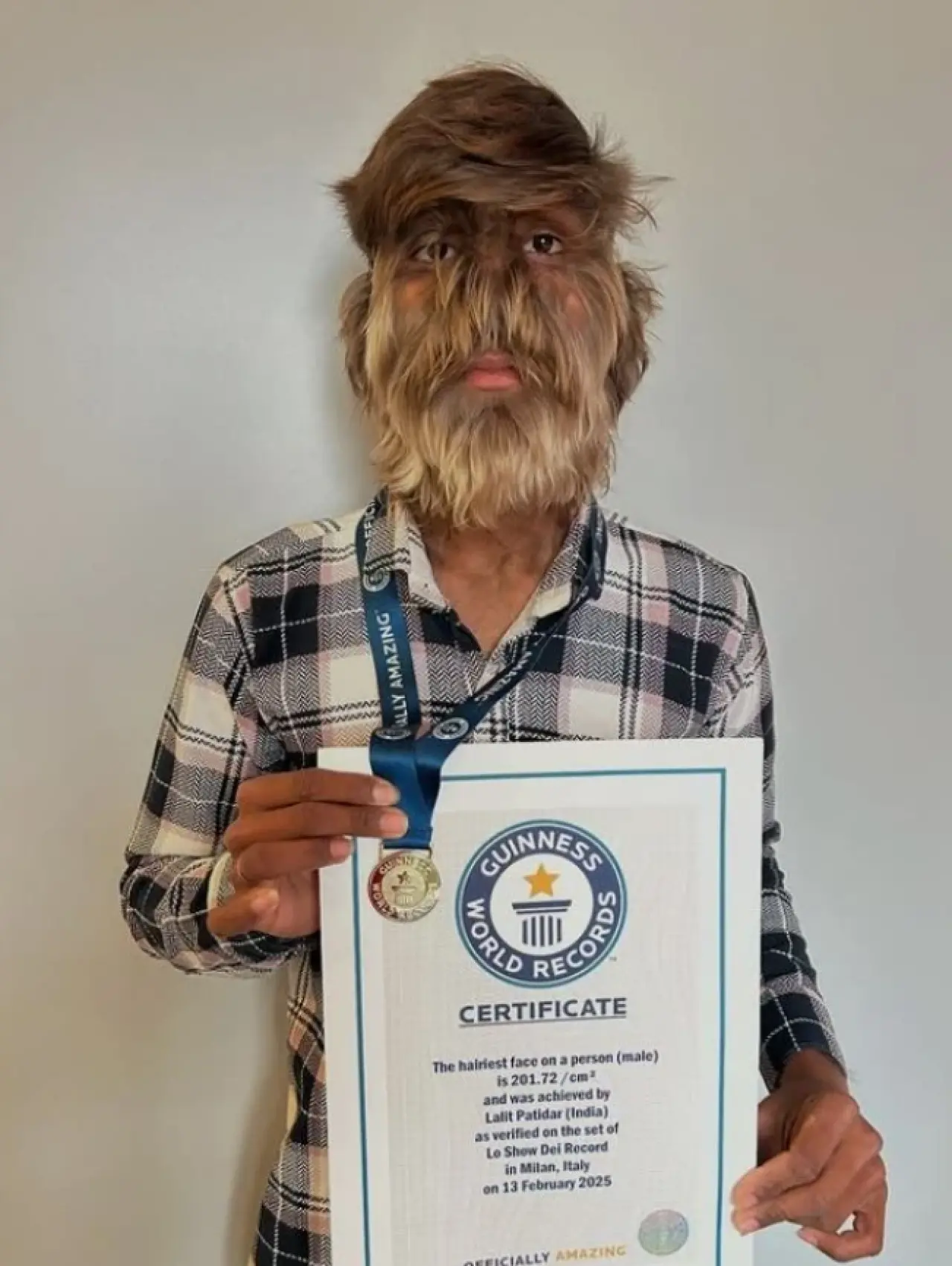 Hindistanlı 18 yaşındaki genç Lalit Patidar, Guinness Rekorlar Kitabı’na dünyanın en kıllı yüzüne sahip erkek olarak girdi. Patidar, 6 yaşında yüzünde ve vücudunun diğer bölgelerinde 5 cm’ye kadar ince kıllar çıkmaya başlamıştı. 18 yaşına geldiğinde, sadece 50 kişide tespit edilen ve halk arasında "Kurt Adam Sendromu" olarak bilinen Hipertrikoz’a sahip olduğunu öğrendi.