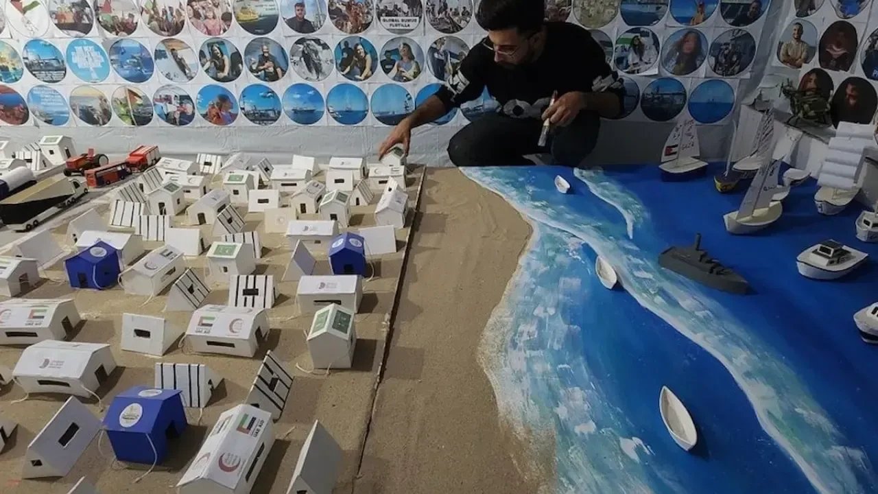 Filistinli gençler, iki yılı aşkın süredir şiddetli bombardımanlara maruz kalan Gazze Şeridi’nde meydana gelen yıkım ve insani krizi, maket çalışmalarıyla dramatize etmektedirler. Bu projeyle, saldırıların yarattığı tahribatı ve yerinden edilen sivillerin dramını topluma duyurmayı amaçlamaktadırlar.