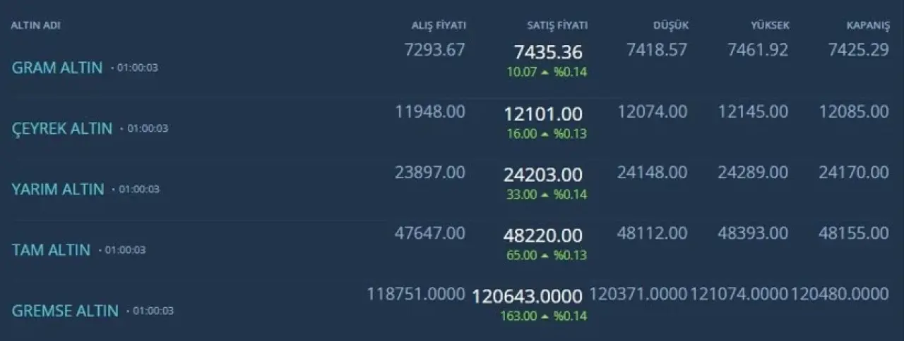 Yarım, tam ve gramse altında rakamlar ise şu şekilde oldu: