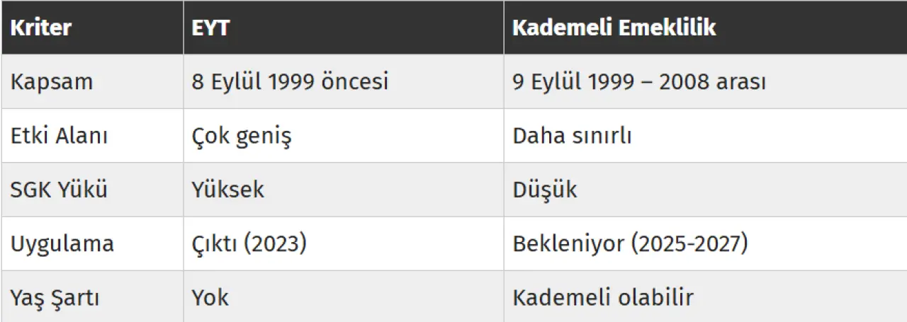 📊 Kademeli Emeklilik ve EYT Arasındaki Farklar