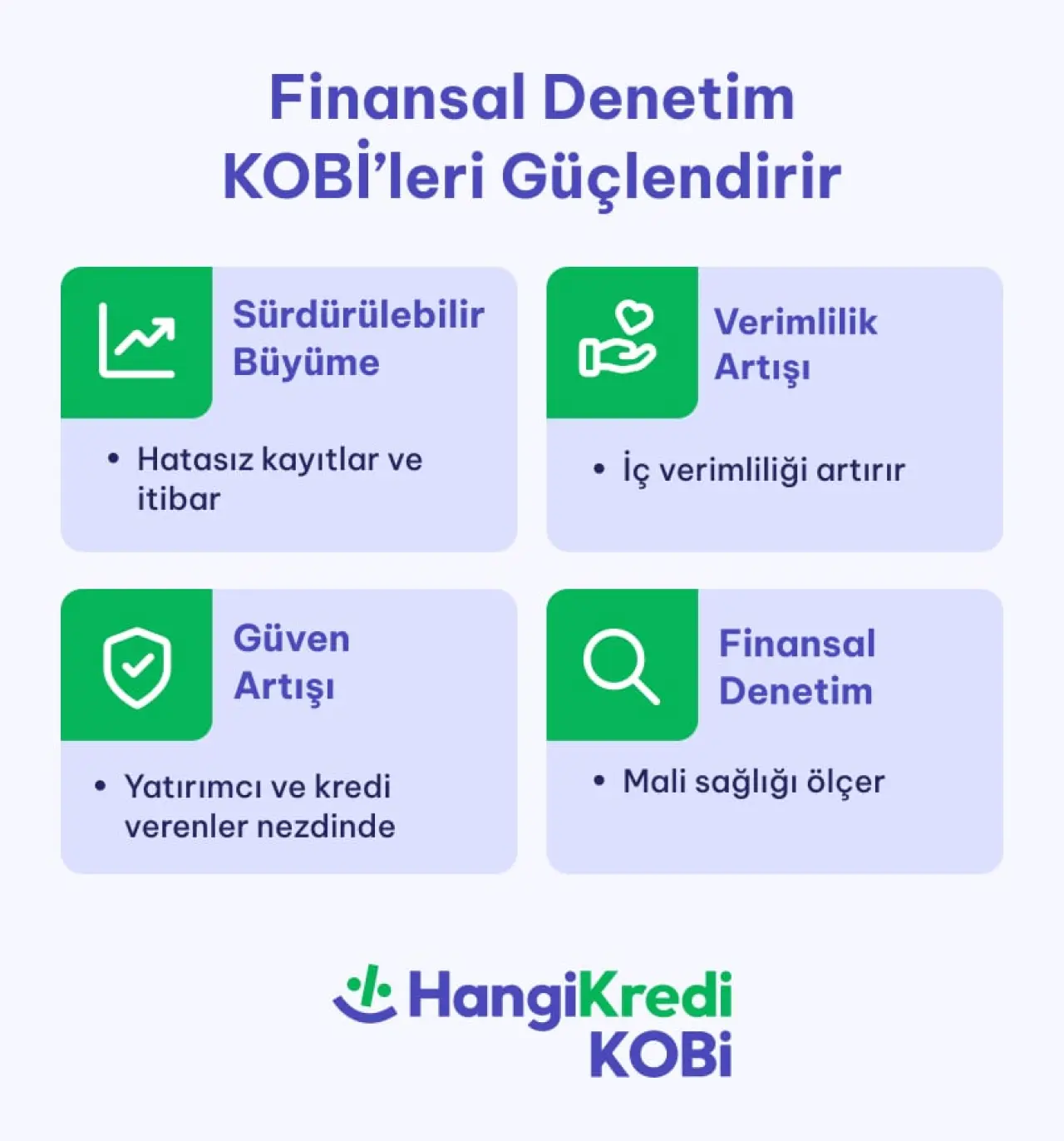 Bu amaçlar doğrultusunda uygulanan finansal denetim, KOBİ’lerin rekabet avantajını koruması ve piyasada sürdürülebilir bir itibar kazanması için temeldir.