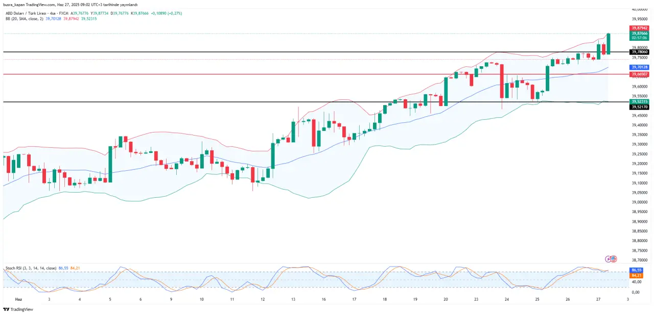 Yaşanan gelişmelerin etkisiyle Dolar/TL kuru sert yükselişler yaşayarak yeni rekorlara kapı açtı. Dünü 39,52 ile 39,78 aralığında geçiren dolar/TL kuru, günü 39,74 seviyesinde bulunuyor. Yeni günde ise sabah seansında 09.00'da 39,87 seviyesinde bulunuyor.