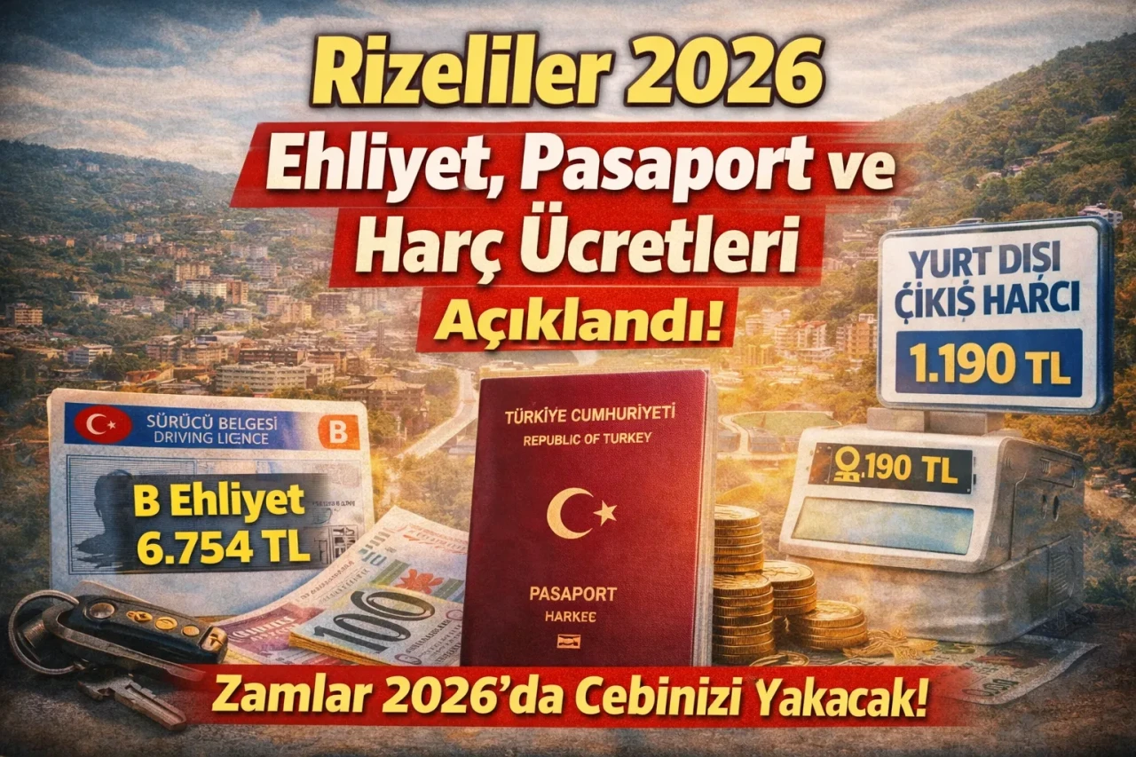 Yeni tarifeler; özellikle araç sahibi olmak isteyenleri, yurt dışına çıkmayı planlayanları ve pasaport yenileme işlemi yapacak Rizelileri yakından ilgilendiriyor.
