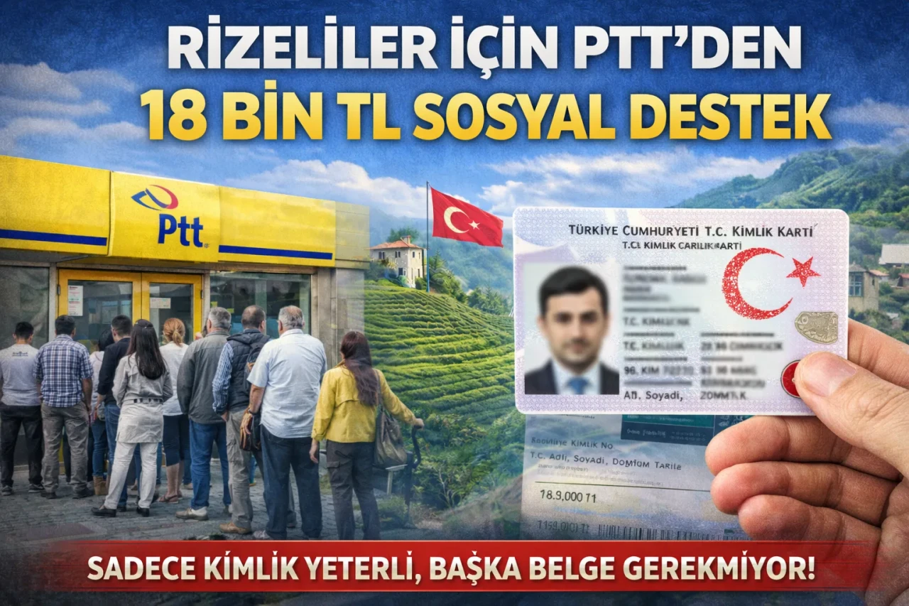 Bu kapsamda Rizeliler, Aralık ayı sonuna kadar PTT aracılığıyla 18.000 TL sosyal yardımı güvenli şekilde alabilecek.