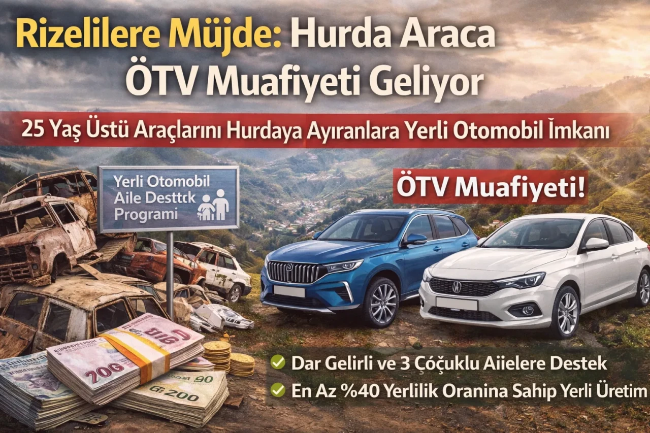 Hazırlanan düzenlemeye göre, 25 yaş ve üzeri aracını hurdaya ayıran vatandaşlar, yerli üretim sıfır otomobil alımlarında ÖTV ödemeyecek. Bu durum, yüksek vergi yükü nedeniyle erişimi zor olan sıfır araçları, özellikle dar gelirli Rizeliler için daha ulaşılabilir hale getirecek.