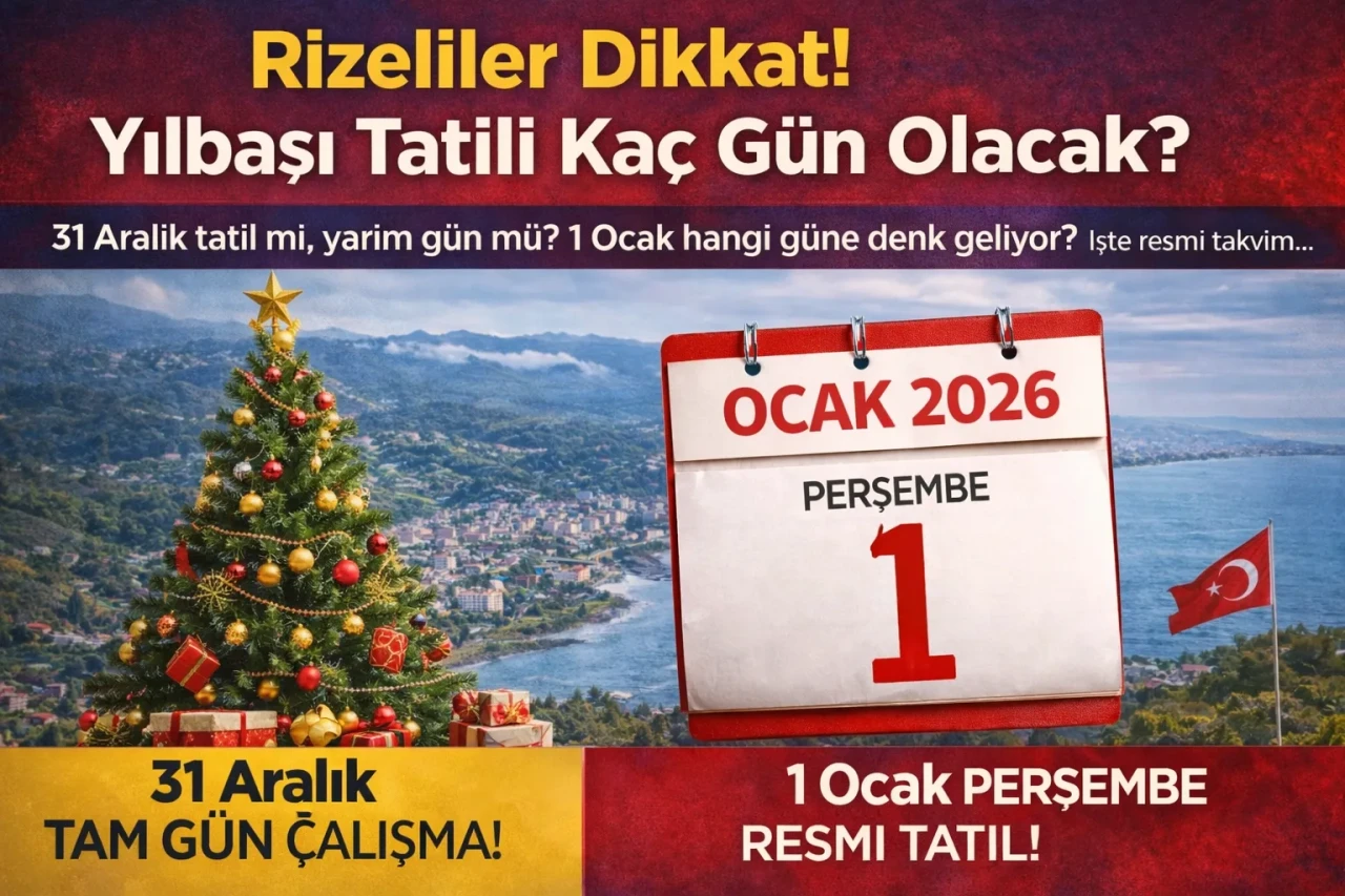 2026 yılına sayılı günler kala Rize’de yaşayan çalışanlar ve öğrenciler, yılbaşı tatilinin süresini ve çalışma düzenini merak ediyor. Yılbaşı gecesi için plan yapanlar, 31 Aralık’ın tatil olup olmadığını ve 1 Ocak’ın hangi güne denk geldiğini araştırıyor. Resmî takvim doğrultusunda soruların yanıtları belli oldu.