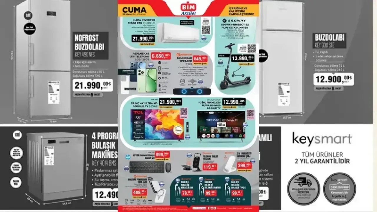BİM Aktüel, her hafta binlerce üründe indirimler ve özel fırsatlar sunan Türkiye'nin önde gelen perakende zinciri BİM Market'in yayınlarını içeren özel bir katalogdur. BİM Aktüel, müşterilerine her hafta taze ve çeşitli ürünlerle dolu bir alışveriş deneyimi sunar. Her hafta güncellenen BİM Aktüel kataloğu, ev ihtiyaçlarından teknolojik ürünlere kadar geniş bir ürün yelpazesi sunar. Kampanyalı ürünler arasında gıda, temizlik malzemeleri, giyim, elektronik ürünler ve daha fazlası yer alır. BİM Aktüel'de bulunan özel indirimler ve fırsatlar, bütçenize uygun alışveriş yapmanıza yardımcı olur. Kocaeli Gündem olarak 18 Nisan 2025 Cuma günü aktüele gelen ürünleri sizin için derledik. İşte o ürünler...
