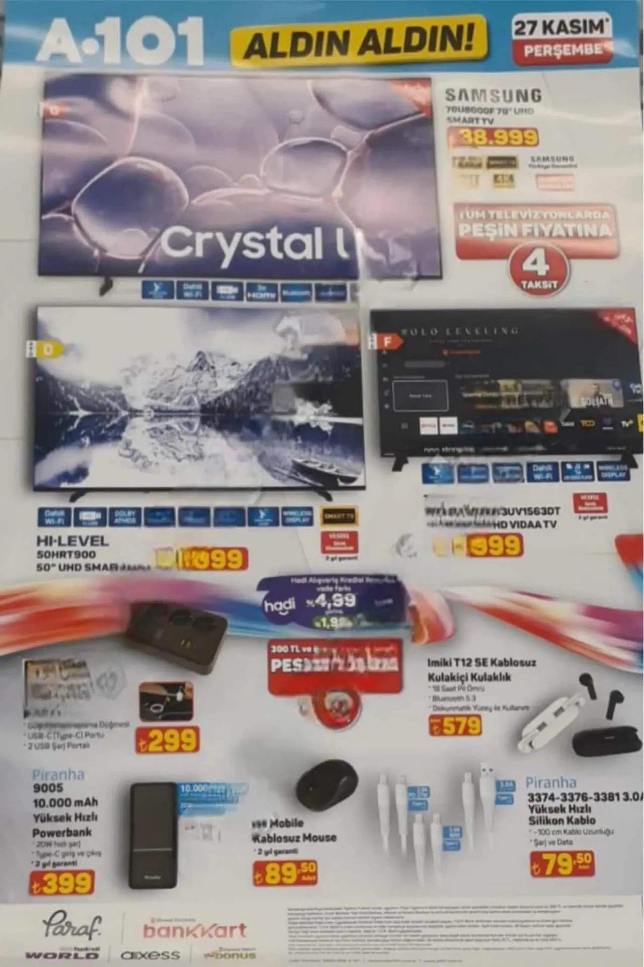 Phılıps 50″ 4K UHD Led Dolby Atoms Smart TV 17,999 TL. bu aktüel ürünleri A101 kampanya avantajı ile kredi kartına taksit imkanı ile alabilirsiniz. A101 yeni dönem kampanya detayları merakla beklediğiniz 27 Kasım 2025 A101 Aktüel kataloğu içinde ki Teknoloji ürünleri bu kadarla sınırılı değil tabi ki;