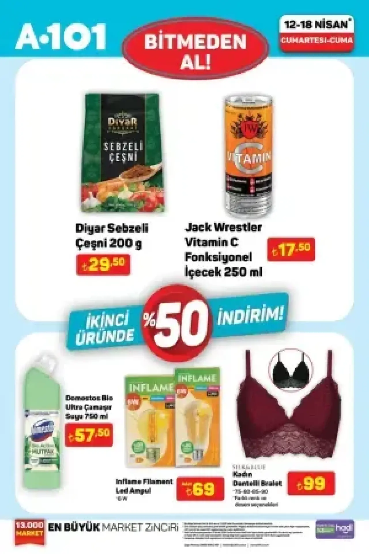 Bu haftanın öne çıkan indirimli ürünleri arasında; dondurma çeşitleri, çay, kahve gibi sıcak içecek grupları ve temel ihtiyaçlar yer alıyor. Baklagil ürünlerinde yapılan indirimler, özellikle kış aylarında tüketimi artan nohut, fasulye, mercimek gibi ürünlerde vatandaşlara bütçe dostu alışveriş fırsatı sunuyor. Mutfak eşyaları kategorisinde ise tencere, tava, saklama kapları ve mutfak gereçlerinde uygun fiyatlar dikkat çekiyor. Özellikle evde yemek yapmayı sevenler için özel soslar ve baharatlarda yapılan indirimler, alışveriş listelerinin vazgeçilmezi olacak gibi görünüyor. A101'in bu hafta sunduğu indirim kampanyaları, yalnızca temel gıda ürünleri ile sınırlı kalmayıp, ev tekstili ve küçük ev aletlerinde de fırsatlar sunuyor. Halılar, nevresim takımları ve mutfak robotları gibi ürünler de avantajlı fiyatlarla satışta olacak. Ayrıca A101 mağazalarında sağlıklı atıştırmalıklardan bebek bakım ürünlerine kadar geniş bir ürün gamında fiyat düşüşleri görülmekte. Bebek bezleri ve bebek mamalarında yapılan indirimler, ailelerin bütçesine destek sağlıyor. Haftalık indirim broşüründe yer alan bu özel fırsatlar, hem mağazalarda hem de A101’in online satış platformunda geçerli olup, kampanya bitmeden alışveriş yapmak isteyenler için önemli bir fırsat sunuyor. 12 Nisan - 18 Nisan tarihleri arasında geçerli olan bu fırsatları kaçırmamak için vatandaşların A101 mağazalarını ziyaret etmeleri veya online mağaza üzerinden alışveriş yapmaları öneriliyor.