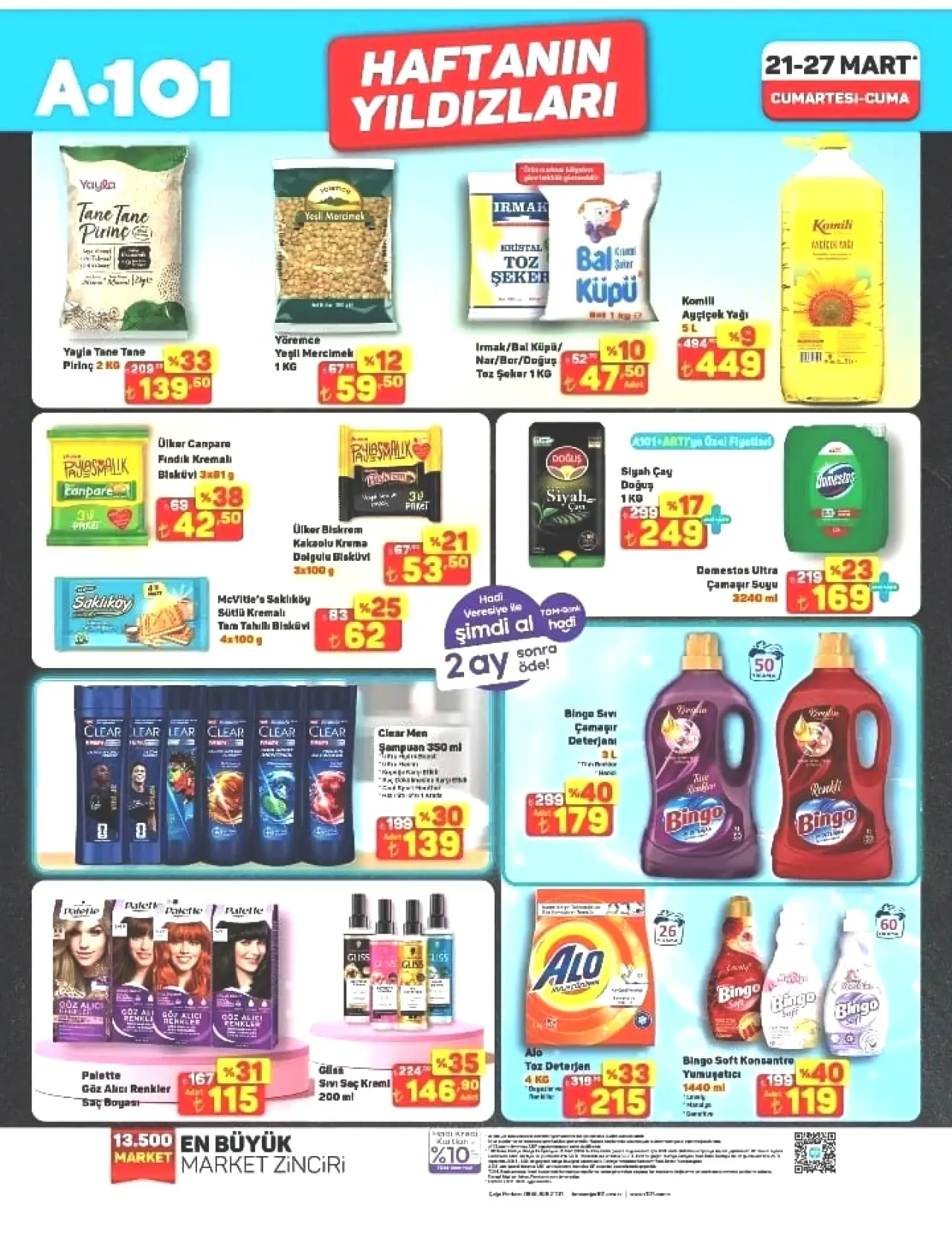 Türkiye'de geniş bir mağaza ağına sahip olan A101, 21-27 Mart 2026 tarihleri arasında geçerli “Haftanın Yıldızları” adı altındaki aktif ürünler kataloğunu duyurdu. Mart ayının son haftasına denk gelen bu kampanyada, mutfaklarda sıkça ihtiyaç duyulan ürünler ön planda yer alıyor.