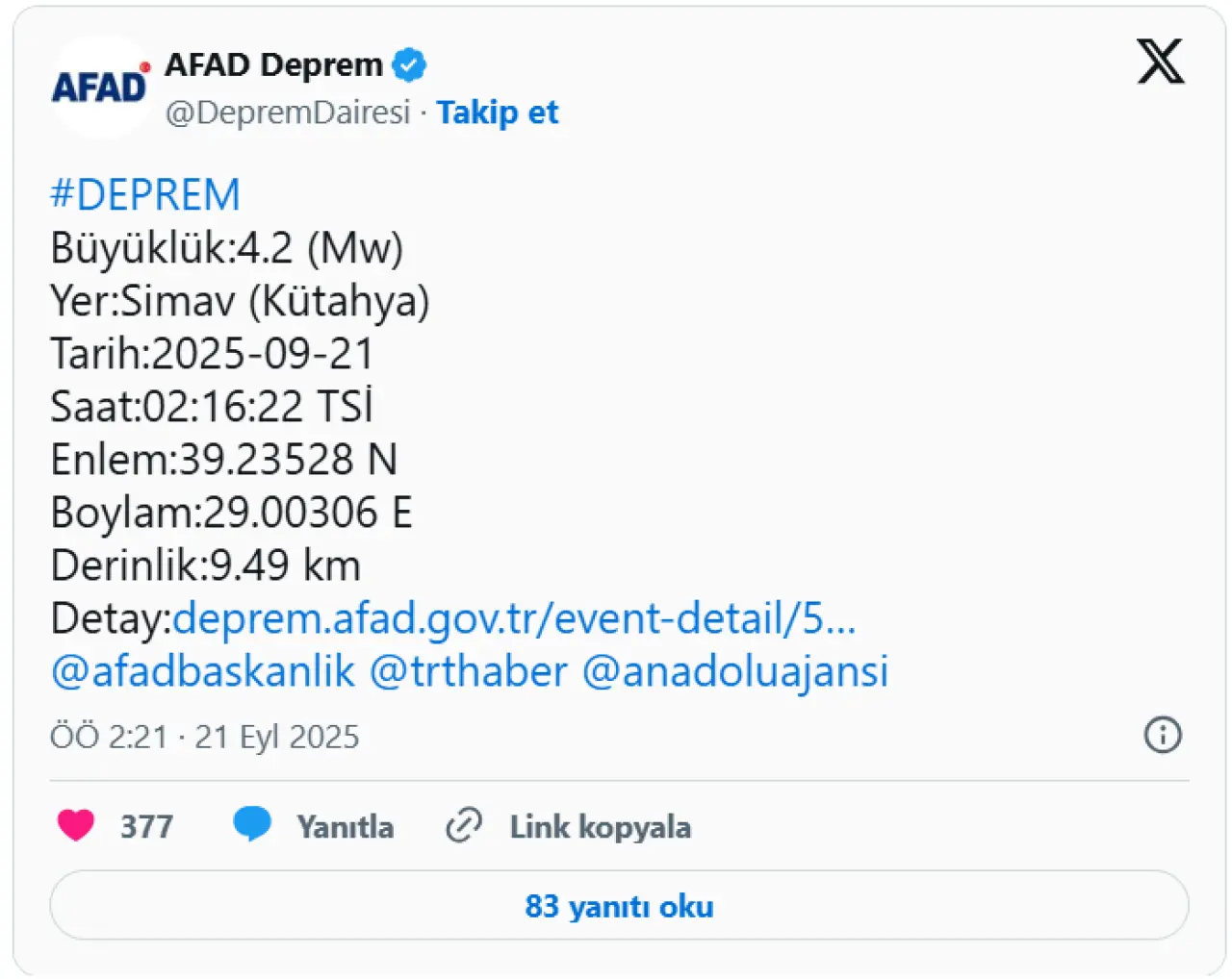 AFAD duyurdu: Kütahya'da gece yarısı korkutan deprem