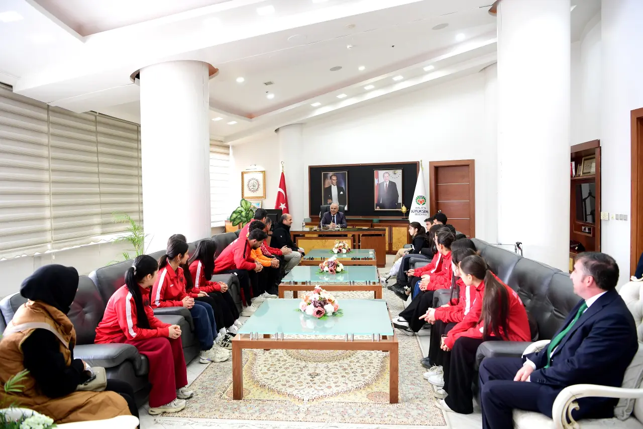 Wushu Kung Fu branşında Edirne’de düzenlenen Balkan şampiyonasında birinci olan Eda Nur Yıldırım, Melisa Gelmez ve Yasemin Gündüz, aynı şampiyonada ikinci olan Esra Yıldırım ve Zeynep Emre ile üçüncü olan Hanım Sude Ekici, Elif Azra Karaduman, Feyza Nur Caniş ve Berrak Duru Dolanbay, Alanya'da düzenlenen Doğu Grubu Gençler Türkiye Taekwondo Şampiyonası’nda 78 kiloda birinci olarak kürsüye çıkan Osman Emre Yağlı, Büyükler Türkiye Taekwondo Şampiyonası’nda üçüncü, Uluslararası Open Taekwondo Şampiyonası’nda ise yedinci olan Ali Karadoğan ile Okullar Arası Para Yüzme Türkiye Şampiyonu Kayra Mutlu Yıldız, aynı şampiyonada ikinci olan Muhammed Atıf Can Yılmaz ve Elif Su Coşut Büyükşehir Belediye Başkanı Sami Er’i makamında ziyaret etti.