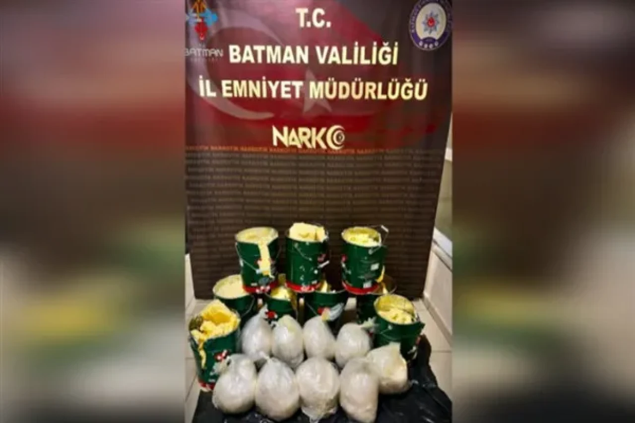 Araçta narkotik dedektör köpeği “Hector” ile yapılan aramada, lokma yapımında kullanılan kızartma yağı bidonlarının içerisine gizlenmiş 45 kilogram metamfetamin ele geçirildi.