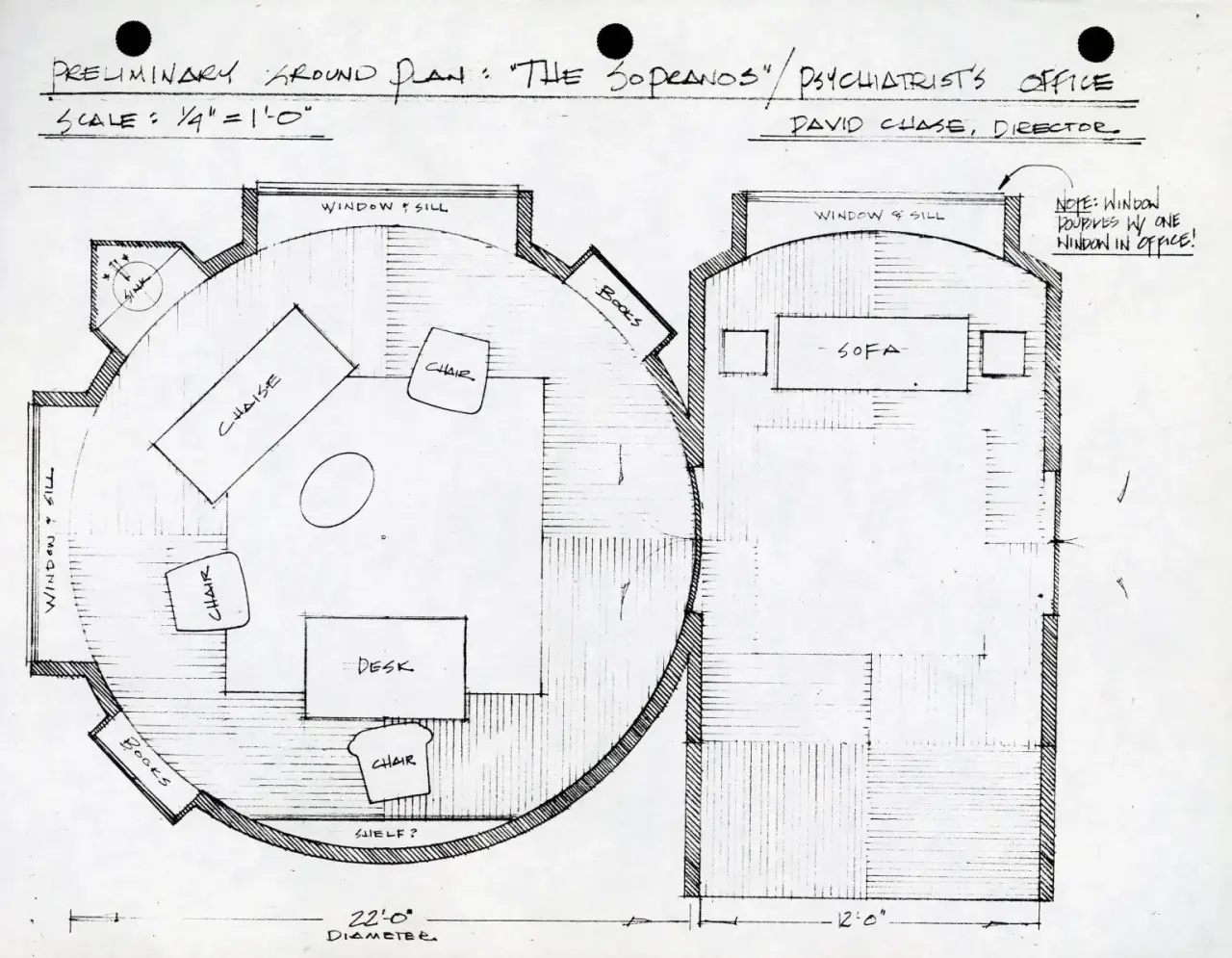 Ground plan for Dr. Melfi’s office by Edward Pisoni. Photo: courtesy the Museum of the Moving Image.