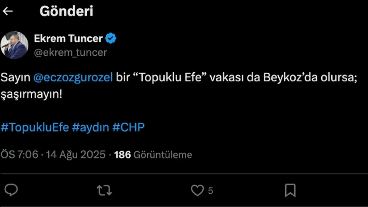 Beykoz’un tanınan iş insanlarından Ekrem Tuncer de 14 Ağustos günü X hesabından bir paylaşımda bulunarak “Topuklu Efe” göndermesi yapmıştı.