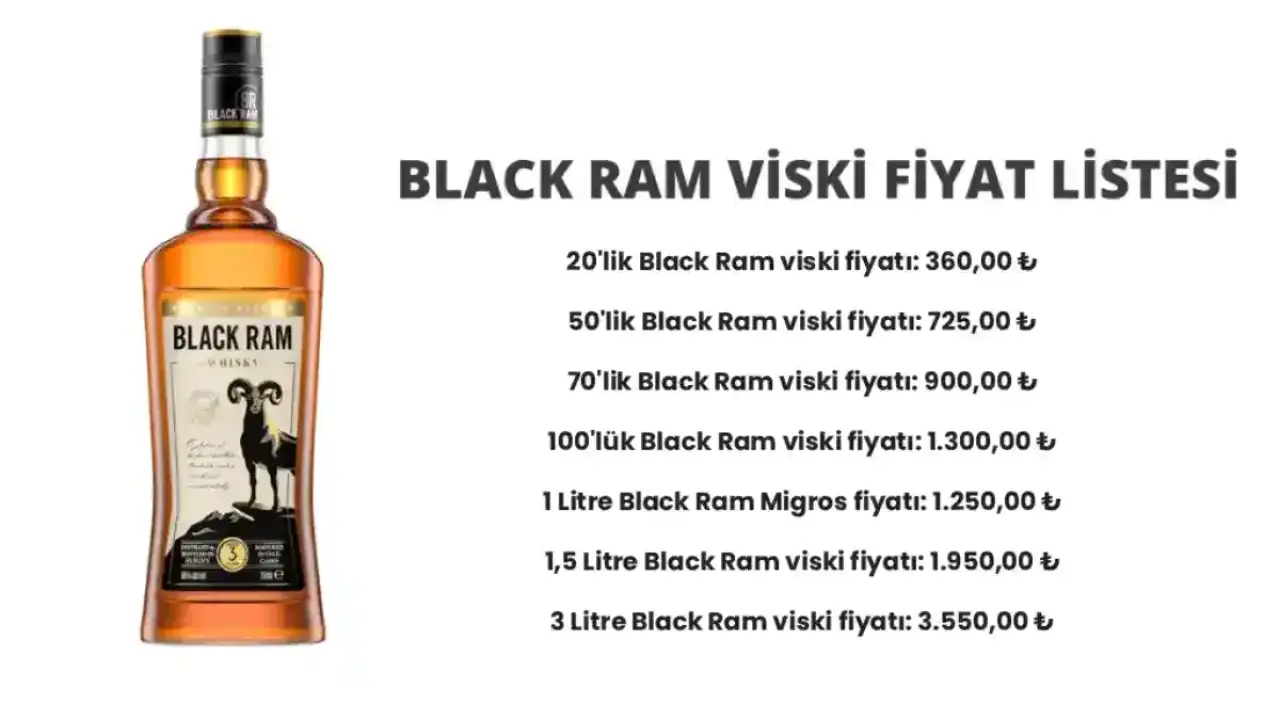 - 100’lük Black Ram viski fiyatı: 1.300,00 ₺