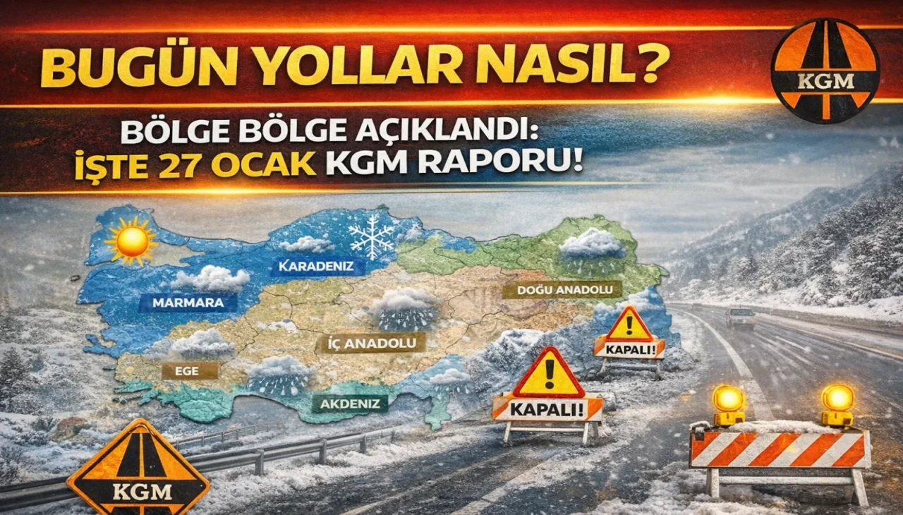 Karayolları Genel Müdürlüğü (KGM) tarafından paylaşılan 27 Ocak 2026 tarihli bültende, Türkiye genelindeki otoyol ve devlet yollarındaki son durum netleşti.