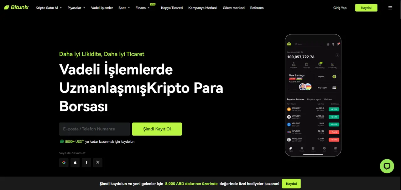 Türkiye, Bitunix tarafından kısıtlanmamış ülkeler arasında ve platforma erişim sorunsuz.