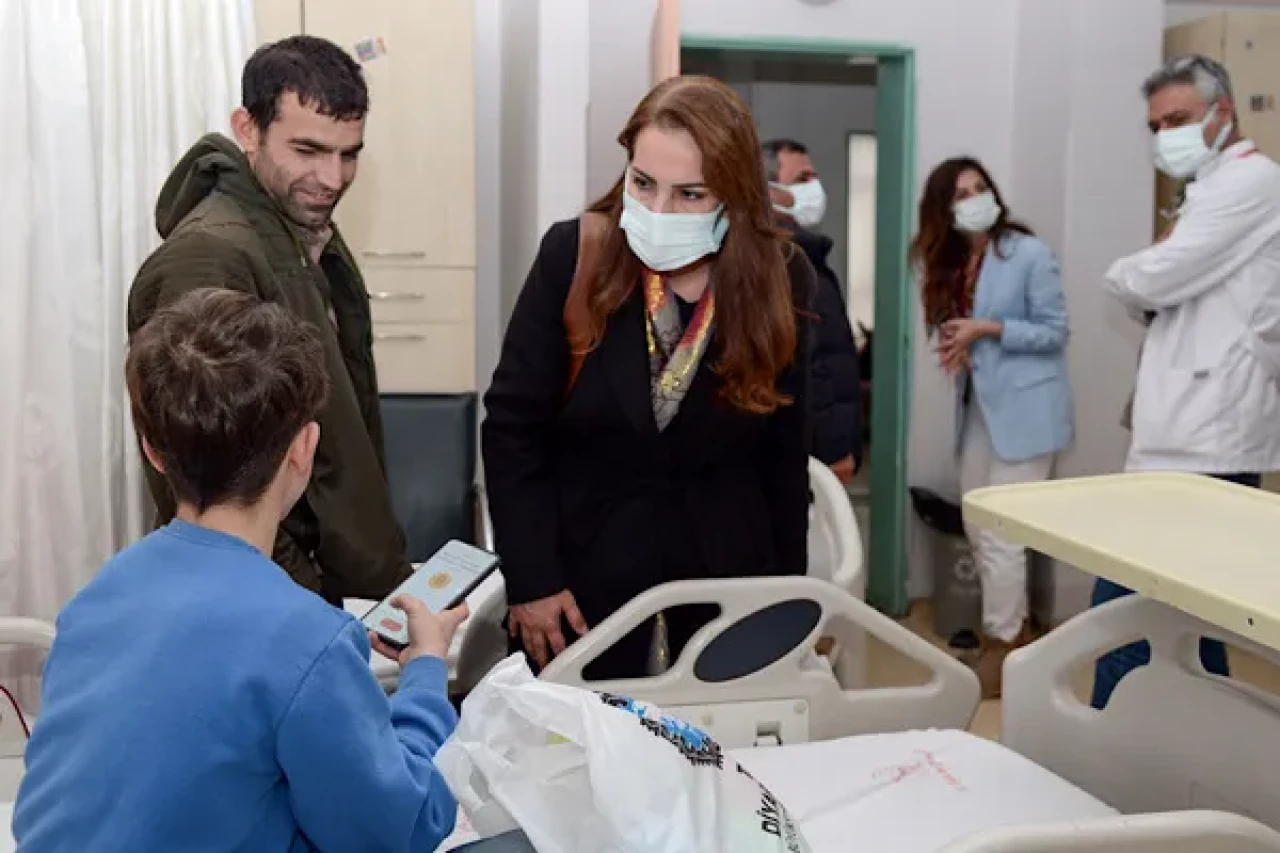 Selahaddin Eyyübi Devlet Hastanesi’ndeki Hematoloji Onkoloji Uzmanı Dr. Nurettin Okur ve Sağlık Bakımları Hizmetleri Müdürü Hatice Koç’un refakat ettiği programda, tedavi süreçleri devam eden çocuklara malzeme desteği sağlandı.