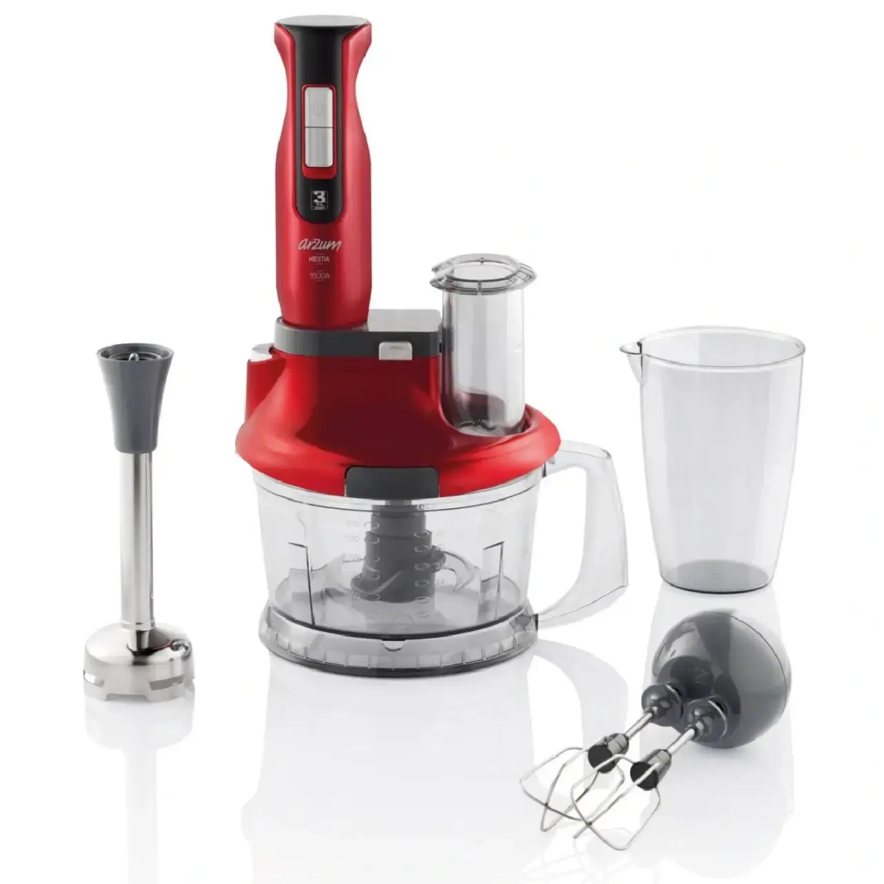 Arzum AR1058 Hestıa, 1500 W’lık güçlü motoru ve 1.5 L geniş haznesi sayesinde hem sert gıdaları rahatlıkla keser hem de pürüzsüz karışımlar elde etmenizi sağlar. Çift bıçaklı paslanmaz çelik yapısıyla uzun ömürlü kullanım sunar. 11 farklı hız ayarı, malzemeleri istediğiniz kıvama getirmenize yardımcı olur. Mutfakta hem pratik hem de dayanıklı bir blender seti arayanların favorisi olmaya aday.