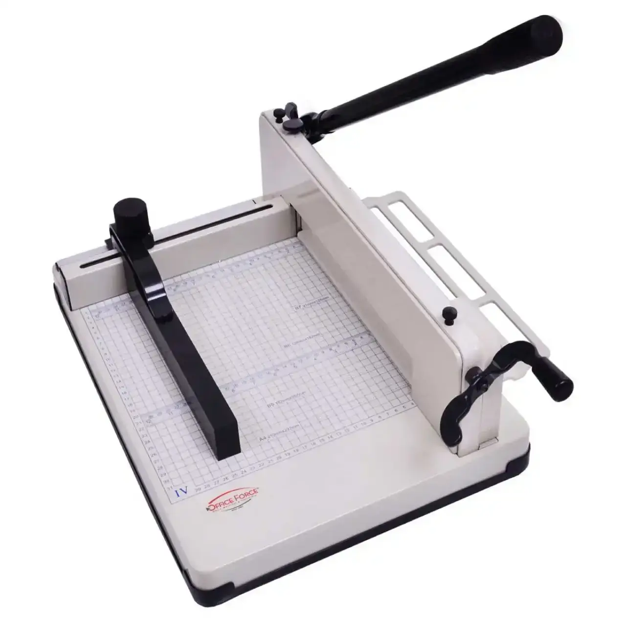 Office Force Of-858, profesyonel kullanıcılara hitap eden yüksek kapasiteli bir kağıt kesme makinesidir. 300 yaprak kesim kapasitesi, yoğun çalışma ortamlarında bile hız ve verimlilik sağlar. Dayanıklı paslanmaz çelik bıçağı uzun ömürlü kullanım sunarken, boyutu ve ağırlığı nedeniyle taşınabilirlik noktasında dikkatli olmak gerekir.
