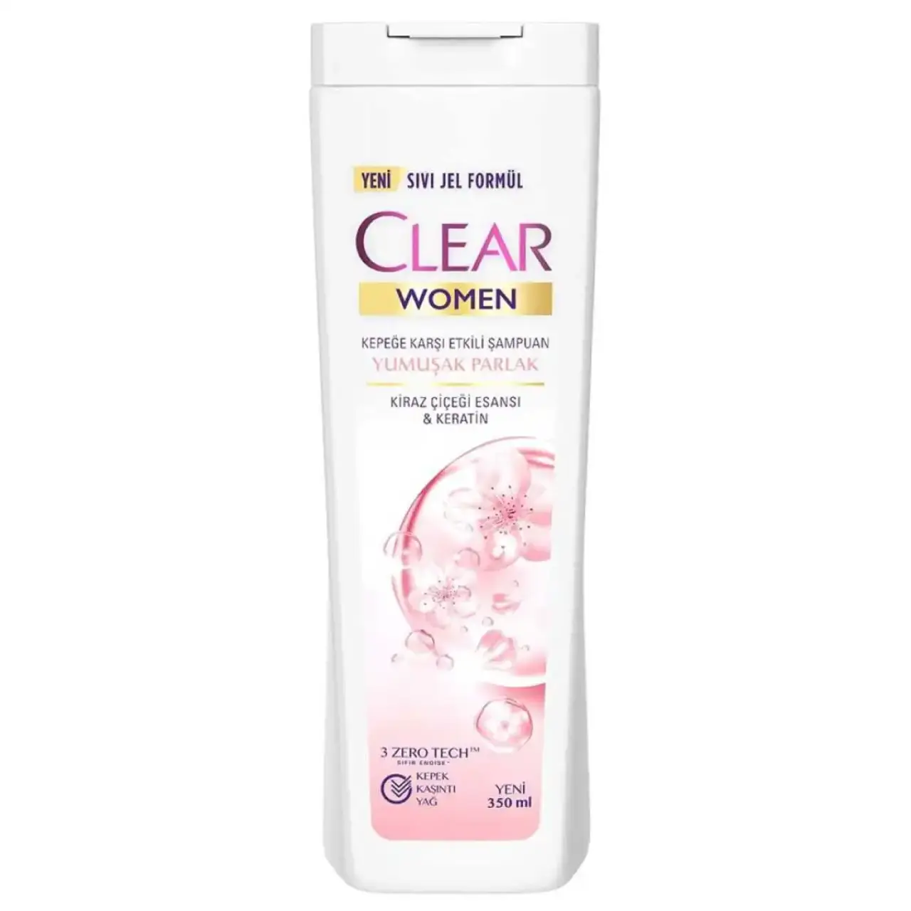Clear Women Yumuşak Parlak Kiraz Çiçeği Esansı & Keratin3ZeroTech teknolojisi ile kepeğe, kepeğe bağlı yağ ve kaşıntıya karşı etkilidir. Amino asitler, B3 Vitamini ve tohum yağı içeriği sayesinde saç derisini besleyip saçlara parlaklık katar. Düzenli kullanımda saçları 3 kata kadar daha yumuşak hale getirerek sağlıkla ışıldamasını sağlar.