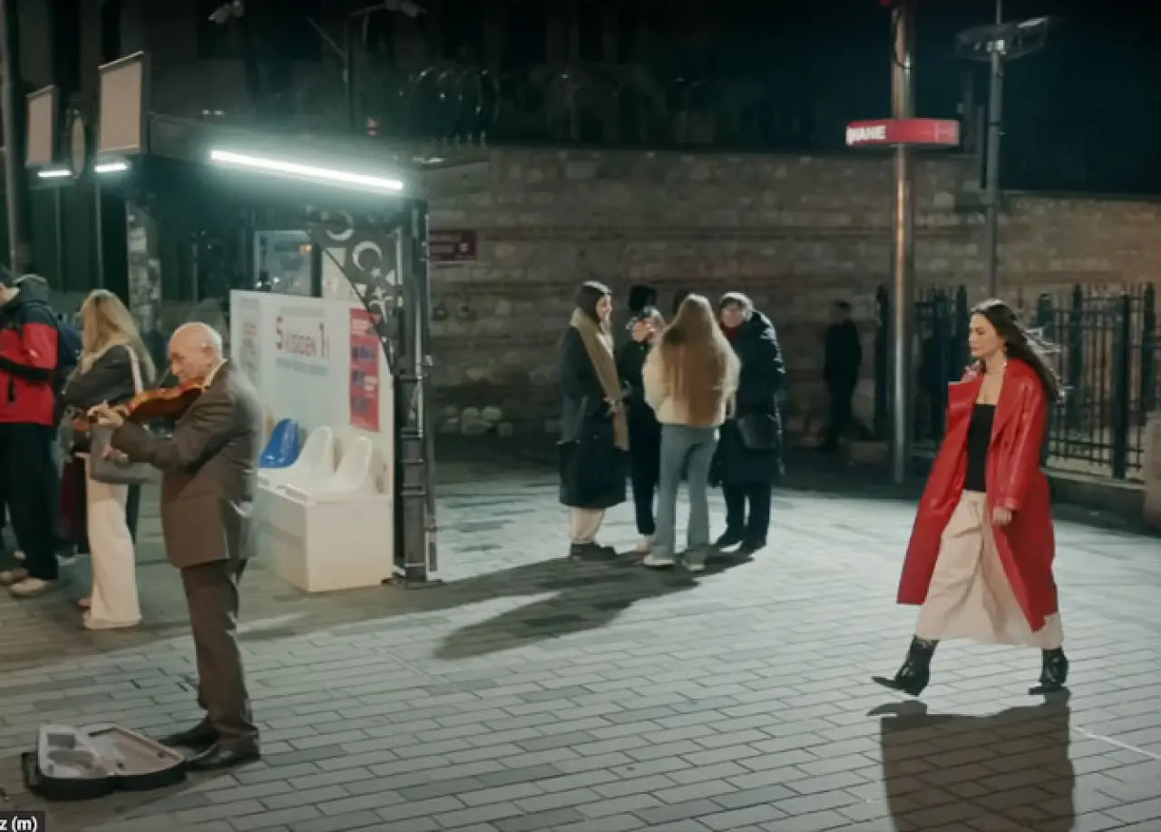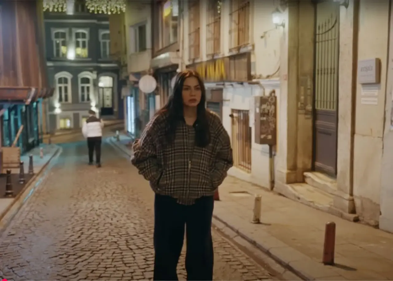 Dizinin ilk bölümünde Beyoğlu’nun sıcak ve canlı havası hissediliyor. Nisan, İstiklal Caddesi’nde bir sokak sanatçısıyla birlikte keman eşliğinde şarkı söylüyor. Sahne, Halit Ayar Tramvay Durağı civarında çekilmiş; cadde ve insanlar doğal bir fon oluşturarak sahneye samimi bir sokak ruhu katıyor.