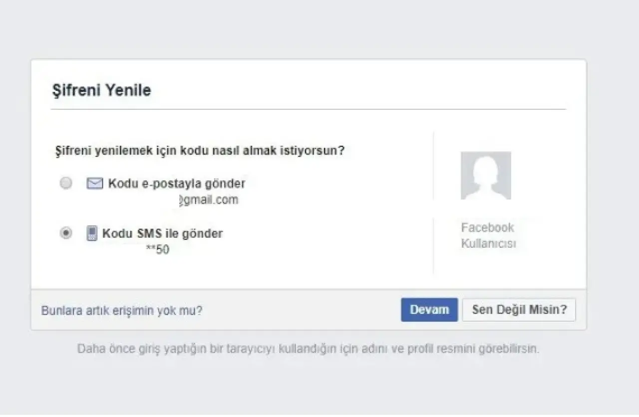 E-posta erişiminin olmadığında ise cep telefonu numarasına kod istemeniz gerek. Bu arada Facebook şifremi unuttum telefona kod gönder işlemi ile gelen kodu şifre yenileme işleminde kullanabilirsiniz.