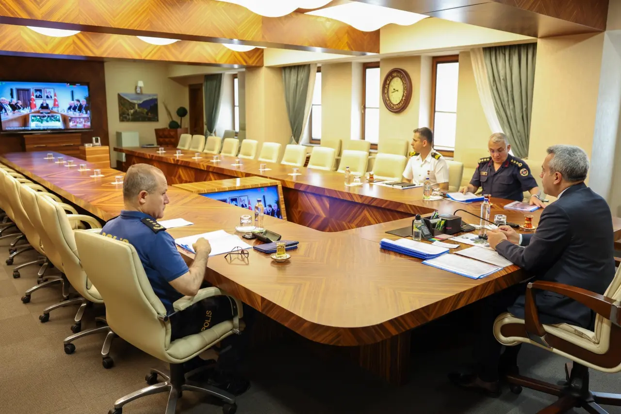 Rize Valisi İhsan Selim Baydaş, İl Emniyet Müdürü Murat Türesin, İl Jandarma Komutanı Albay Ali Güngör ve Rize Sahil Güvenlik Karakol Komutan Vekili Üsteğmen Alican Özbey, İçişleri Bakanı Ali Yerlikaya'nın başkanlığında düzenlenen önemli bir Video Konferans Sistemi (VKS) toplantısına katılım sağladı.