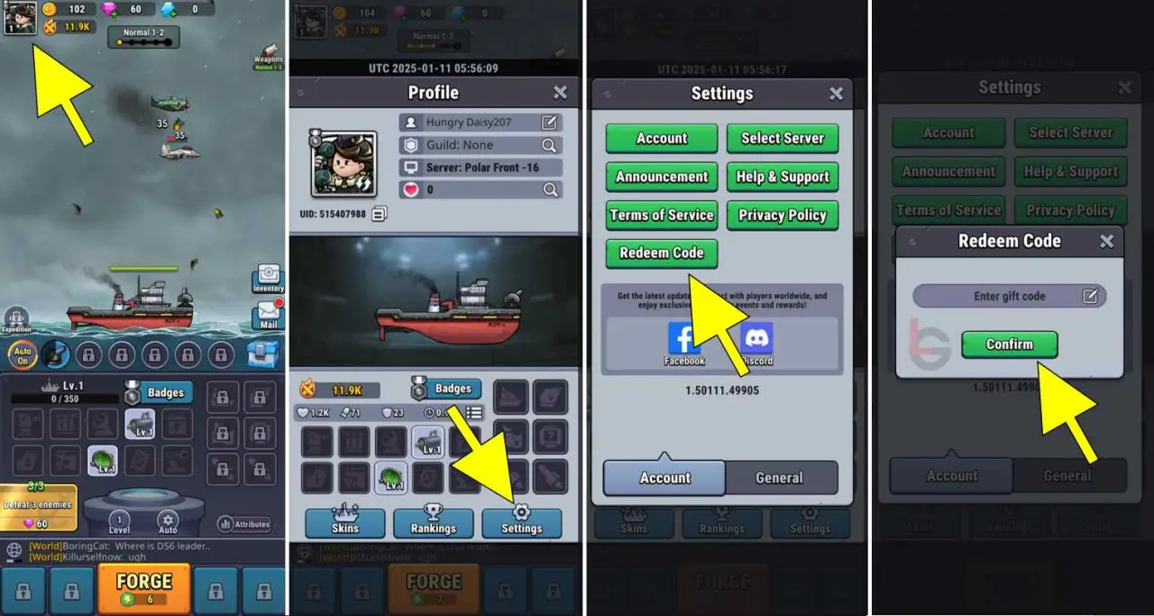 Follow these steps to redeem the code in High Seas Hero: